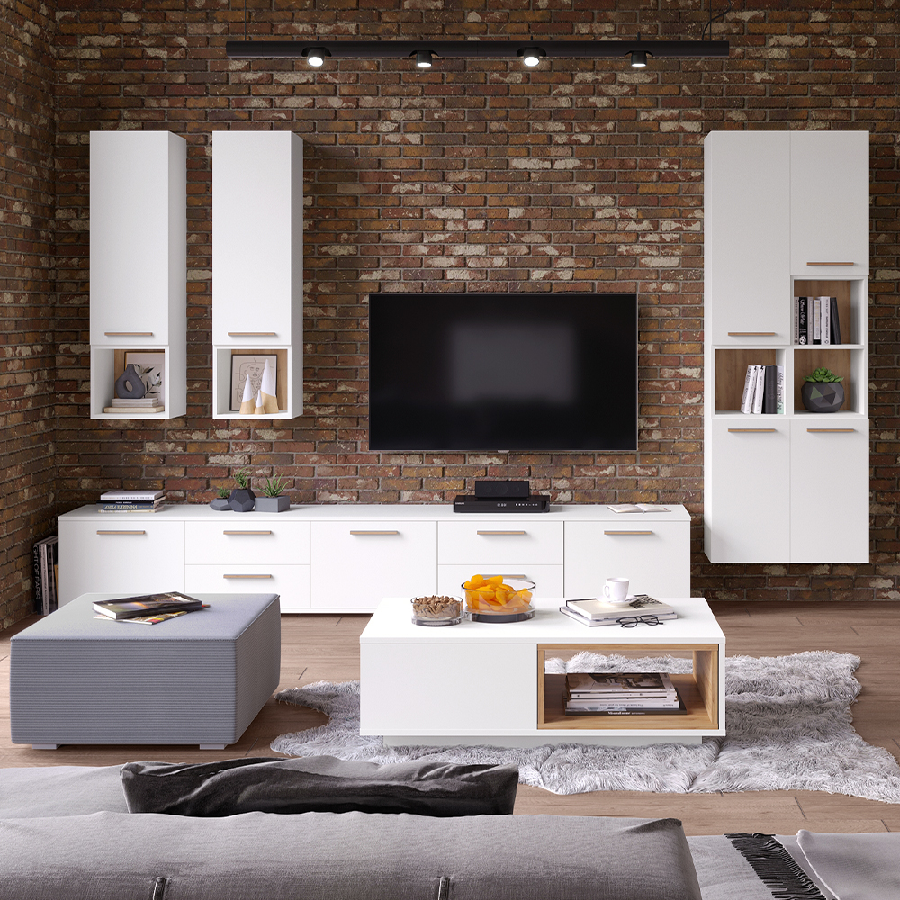 • korpus debljine 18mm lakiran UV lakom sa soft mat efektom u beloj boji