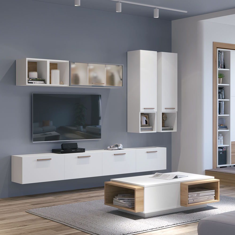 - bočne strane, plafon i pod elementa lakirani UV lakom sa soft mat efektom u beloj boji