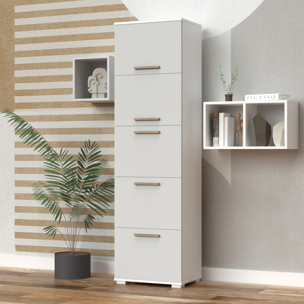 • korpus debljine 18mm lakiran UV lakom sa soft mat efektom u beloj boji