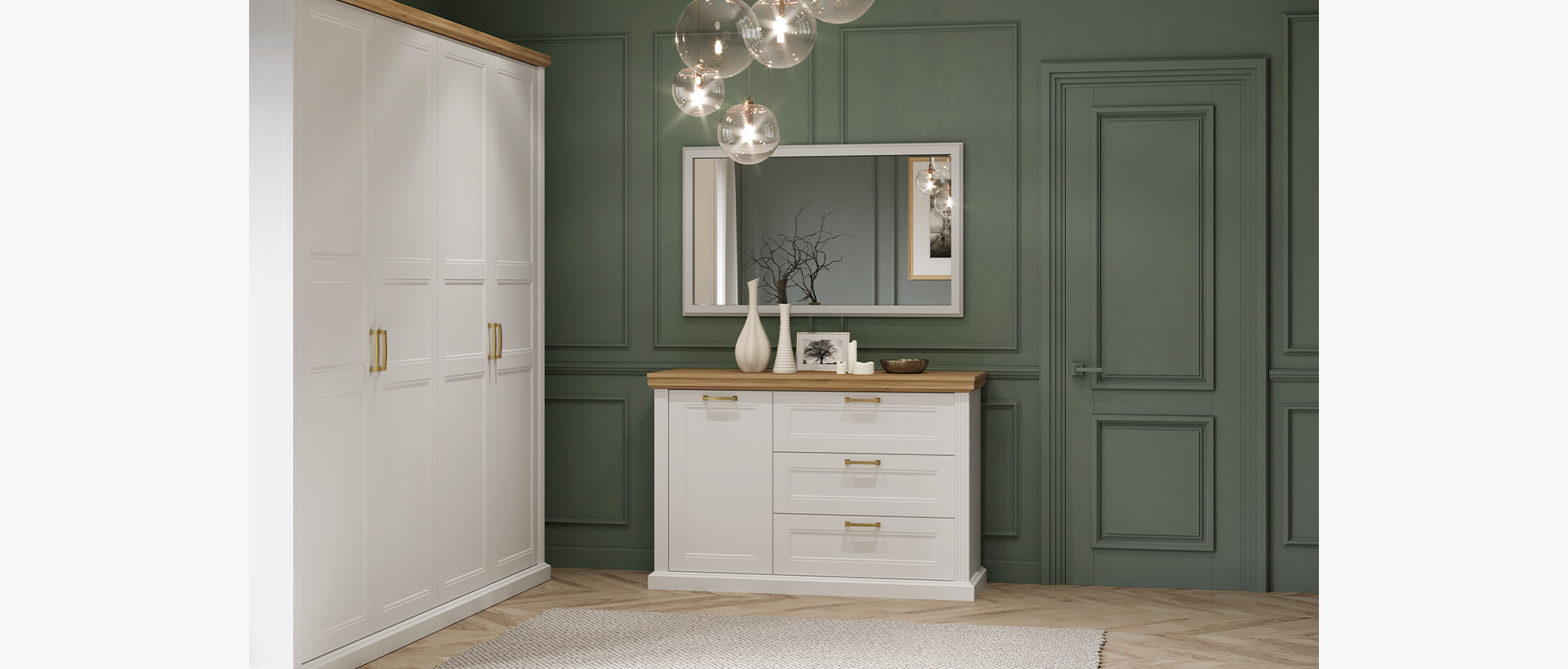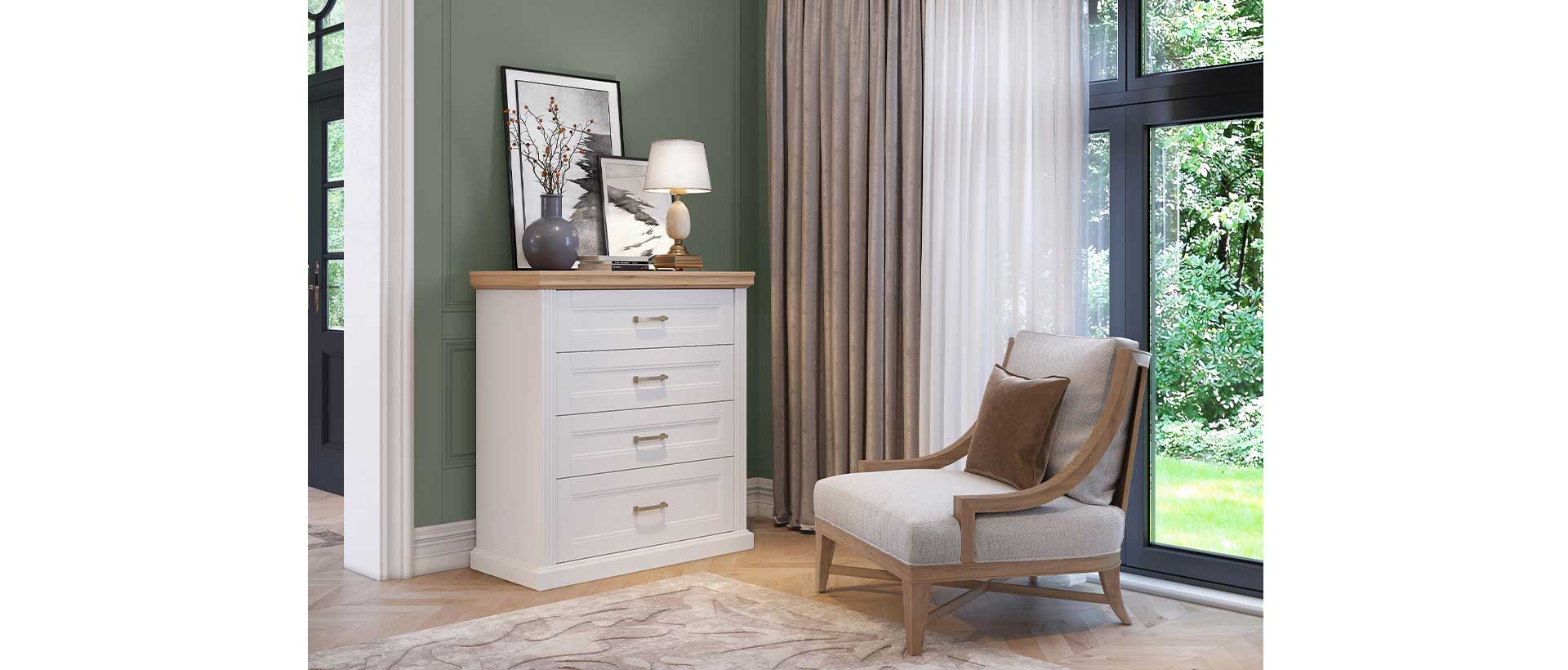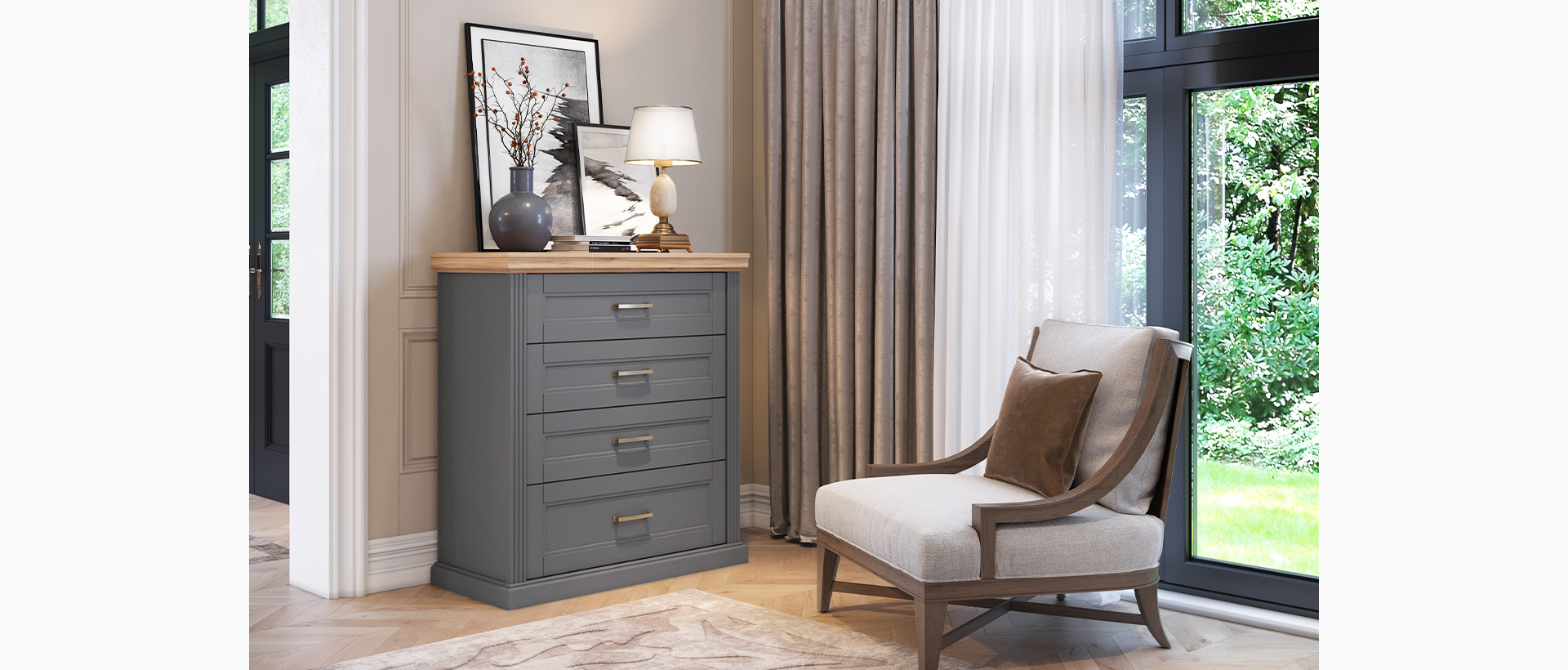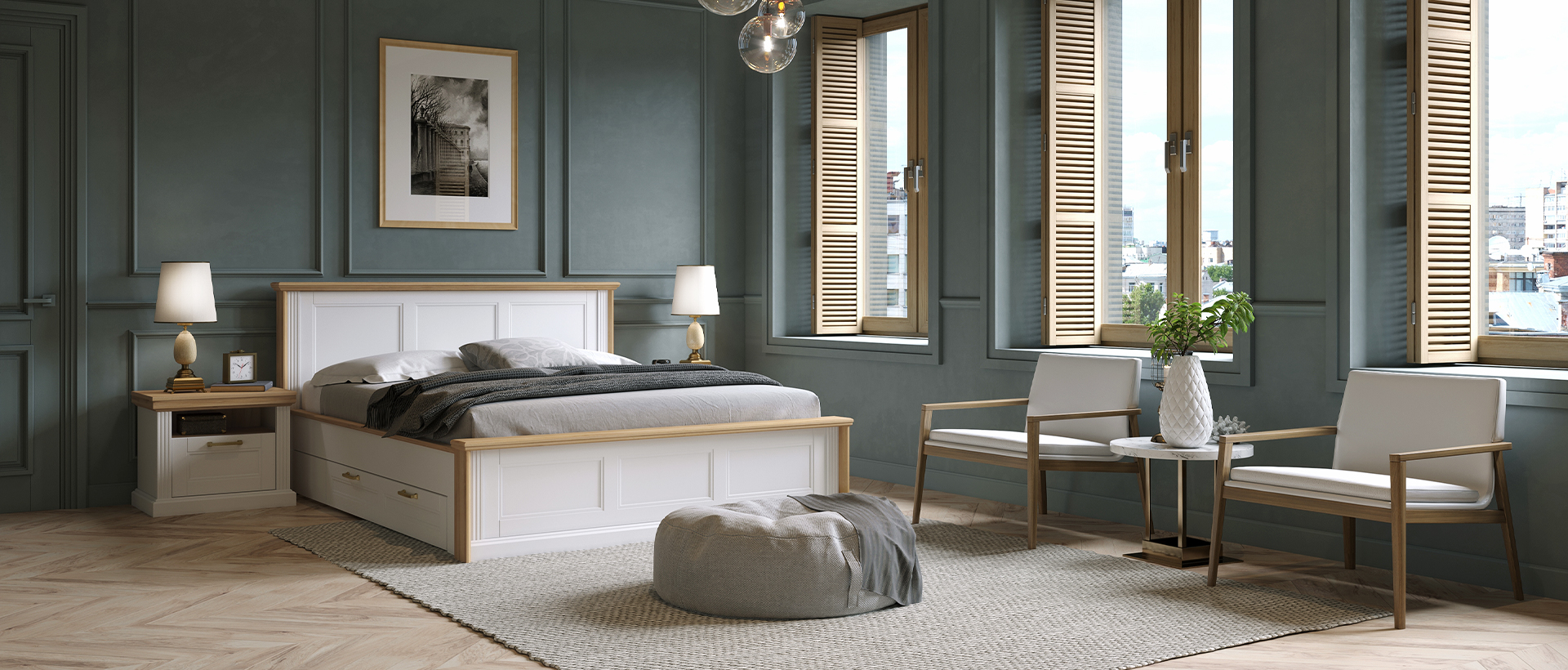 Spavaća soba Tara lakirana UV mat lakom u grafit sivoj ili beloj boji u kombinaciji sa drvo dekorom Pacifik orah