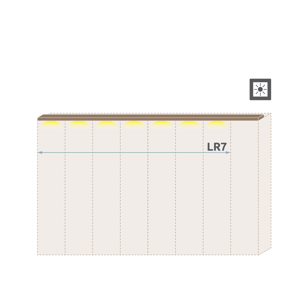 - pokrivna lajsna plakara izrađena je od univera u drvo-dekoru Pacifik orah, sadrži sedam LED sijalica i sastavni je deo dodatne opreme plakara
