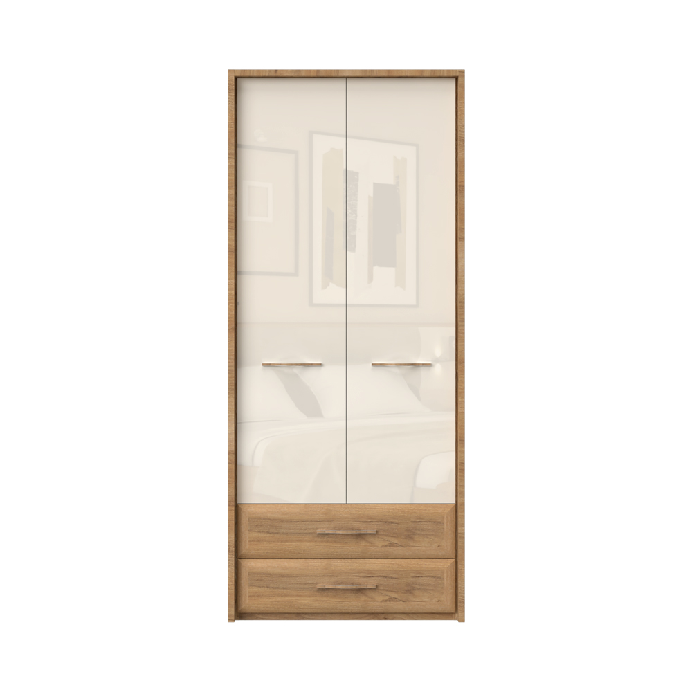Funkcionalni plakar za spavaću sobu‚ iz kolekcije GALA jake geometrijske forme. Ovaj element nameštaja sadrži dva krila i dve fioke.
