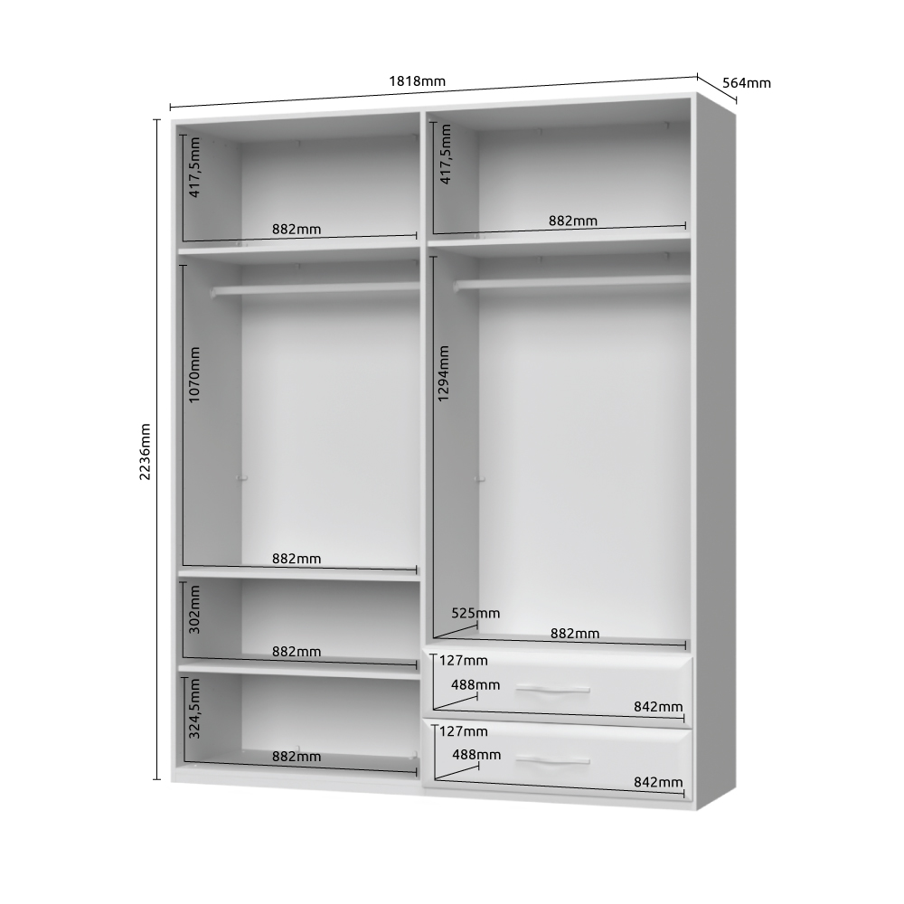 - plakar sadrži četiri veća faha kao i dve veće garderobne šipke