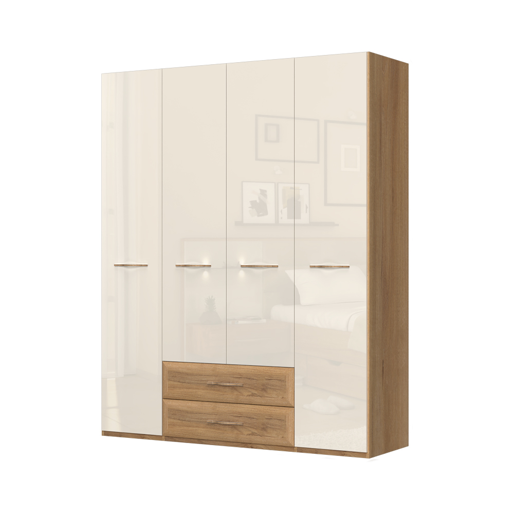 Funkcionalni plakar za spavaću sobu‚ iz kolekcije GALA jake geometrijske forme. Ovaj element nameštaja sadrži četiri krila i dve fioke.