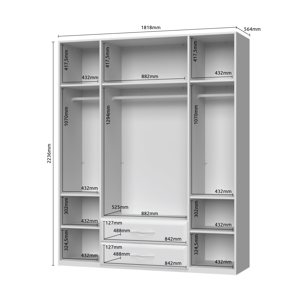 - plakar sadrži jedan veći i šest manjih fahova kao i jednu manju i dve veće garderobne šipke
