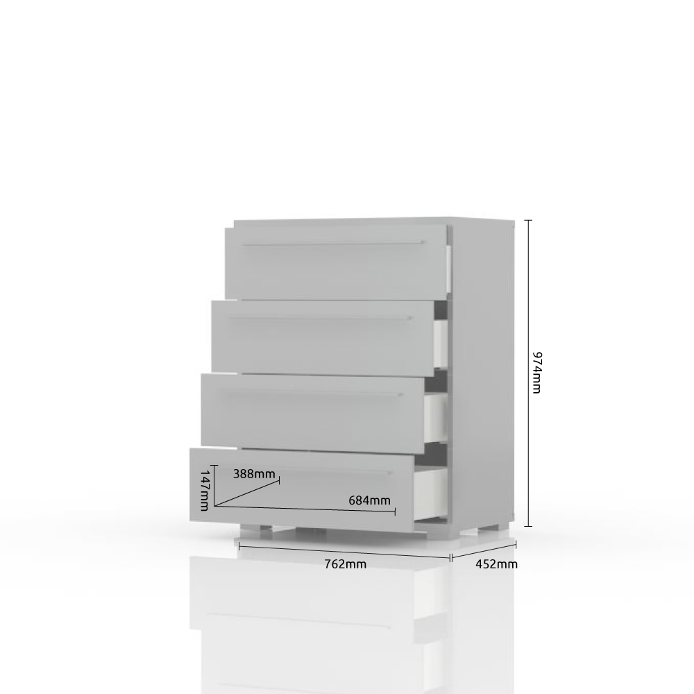 Fiokar sa četiri prostrane fioke, dizajnirane geometrijske forme iz kolekcije nameštaja PIANO.