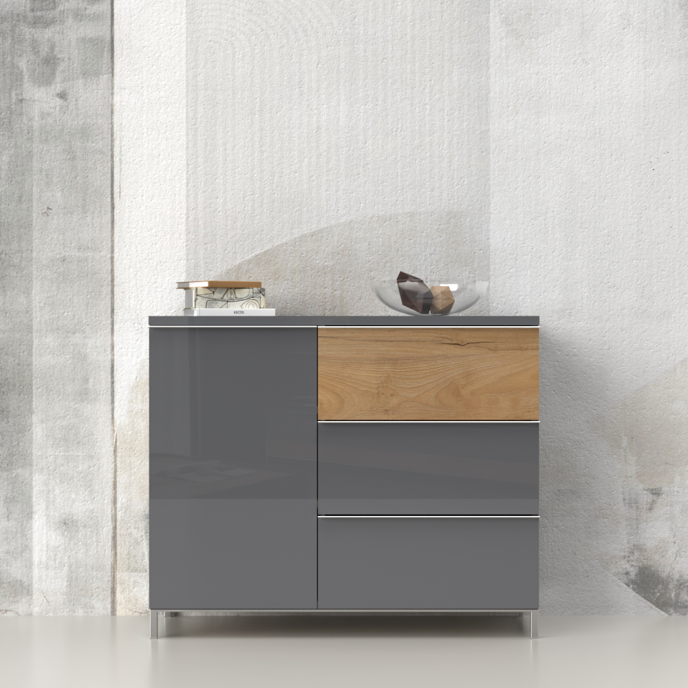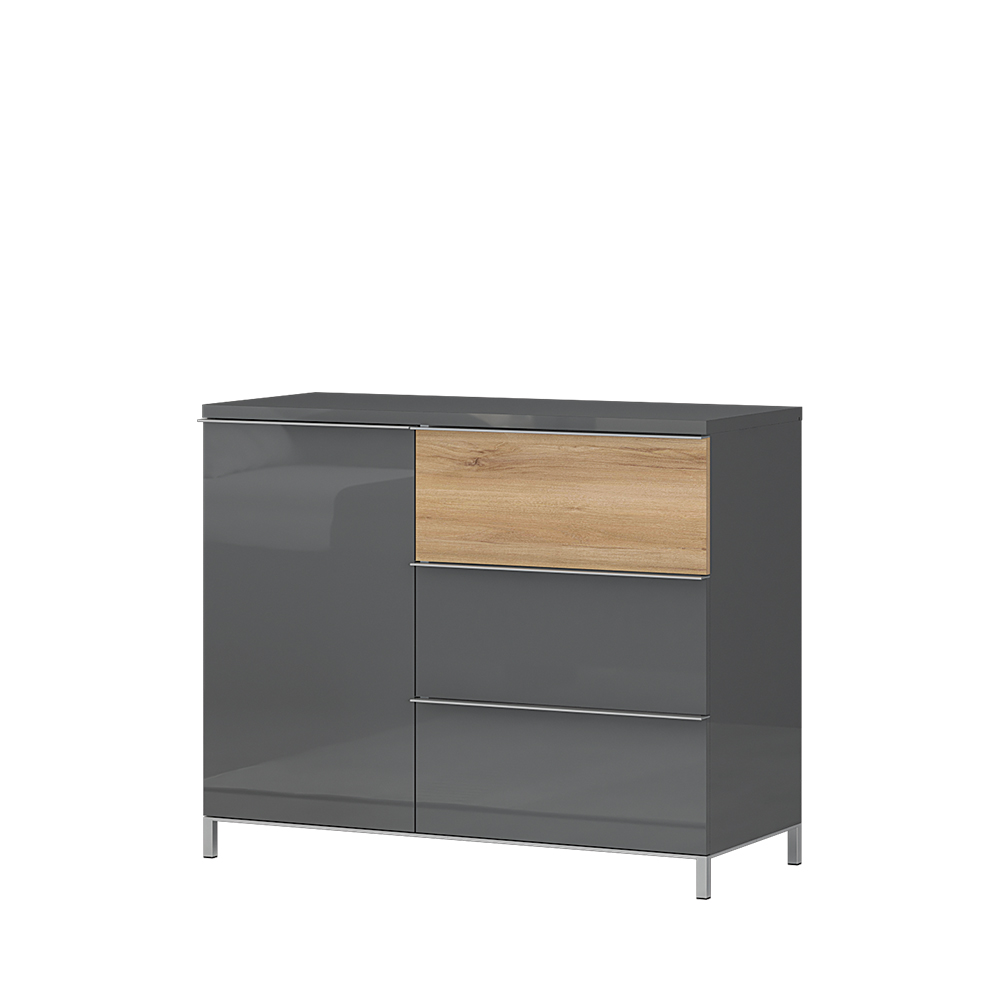 Funkcionalna komoda sa jednim krilom i tri fioke, modernog dizajna i minimalističke forme.