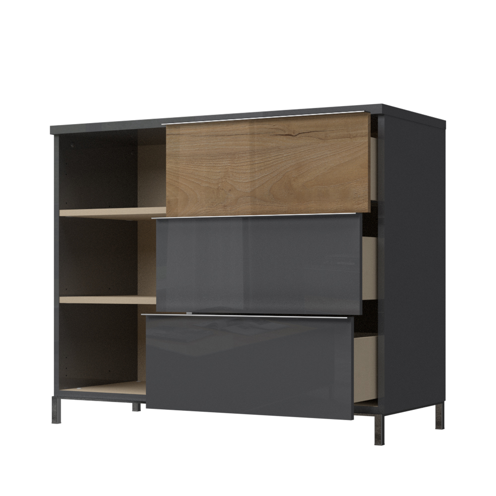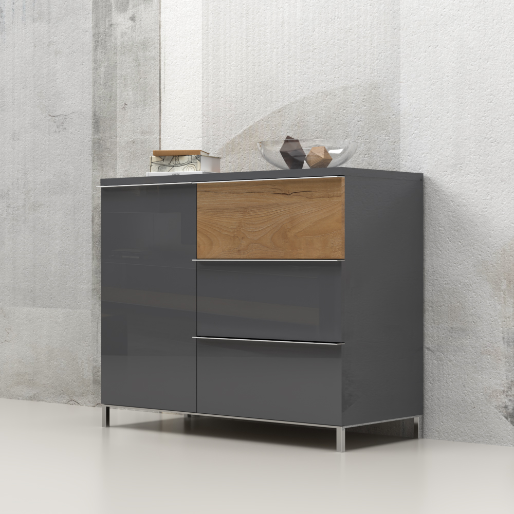 - vidljivi delovi komode lakirani su UV lakom u visokom sjaju u artaktivnoj Antracit boji ;