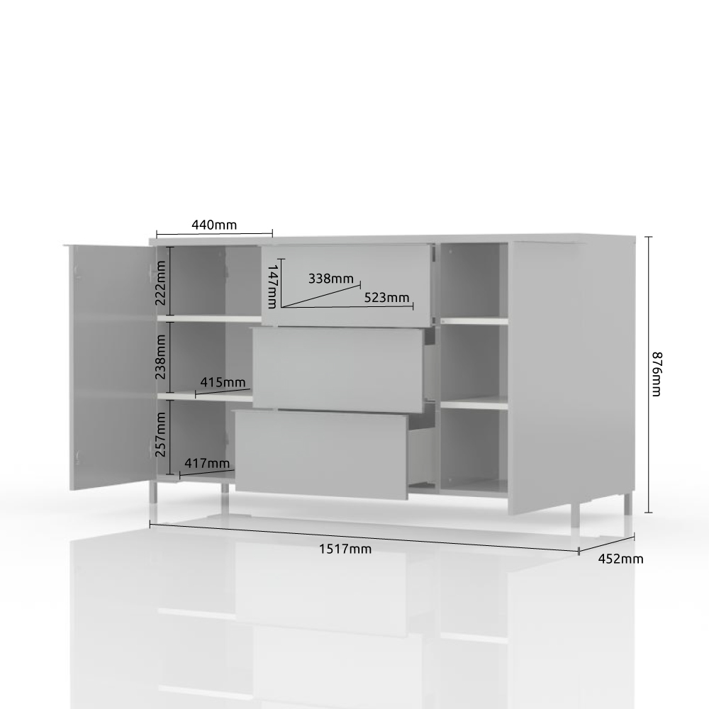 Funkcionalna komoda sa dva krila i tri fioke, modernog dizajna i minimalističke forme.