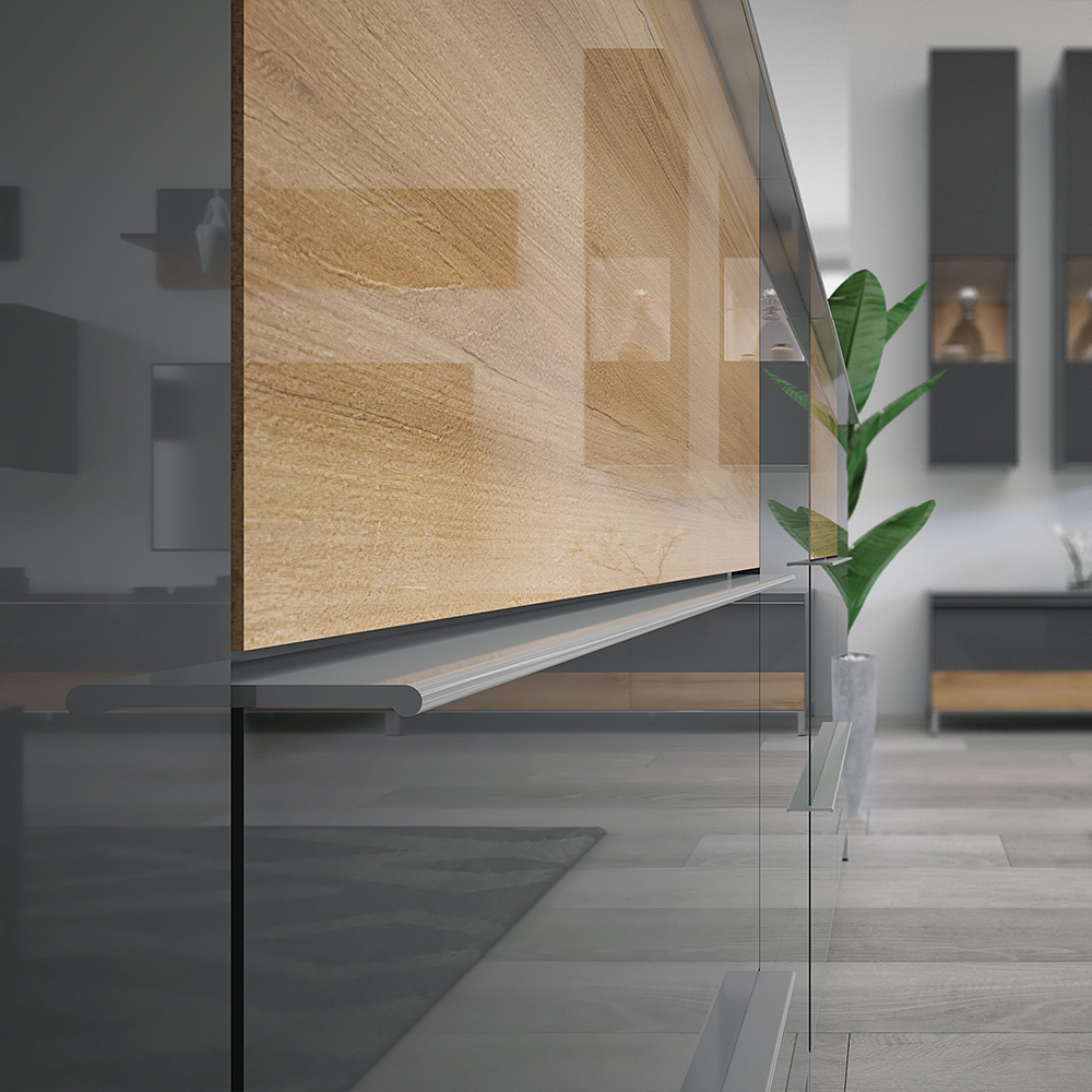 • vidljivi delovi komode lakirani su UV lakom u visokom sjaju u artaktivnoj Antracit boji ;