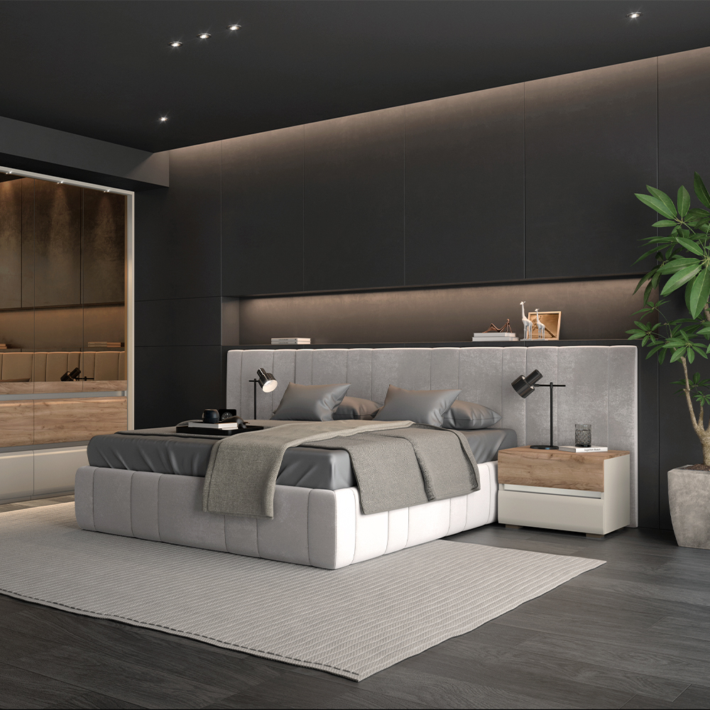 Krevet iz kolekcije INVICTUS, tapaciran najkvalitetnijim plišem za maksimalni komfor u vašoj spavaćoj sobi.