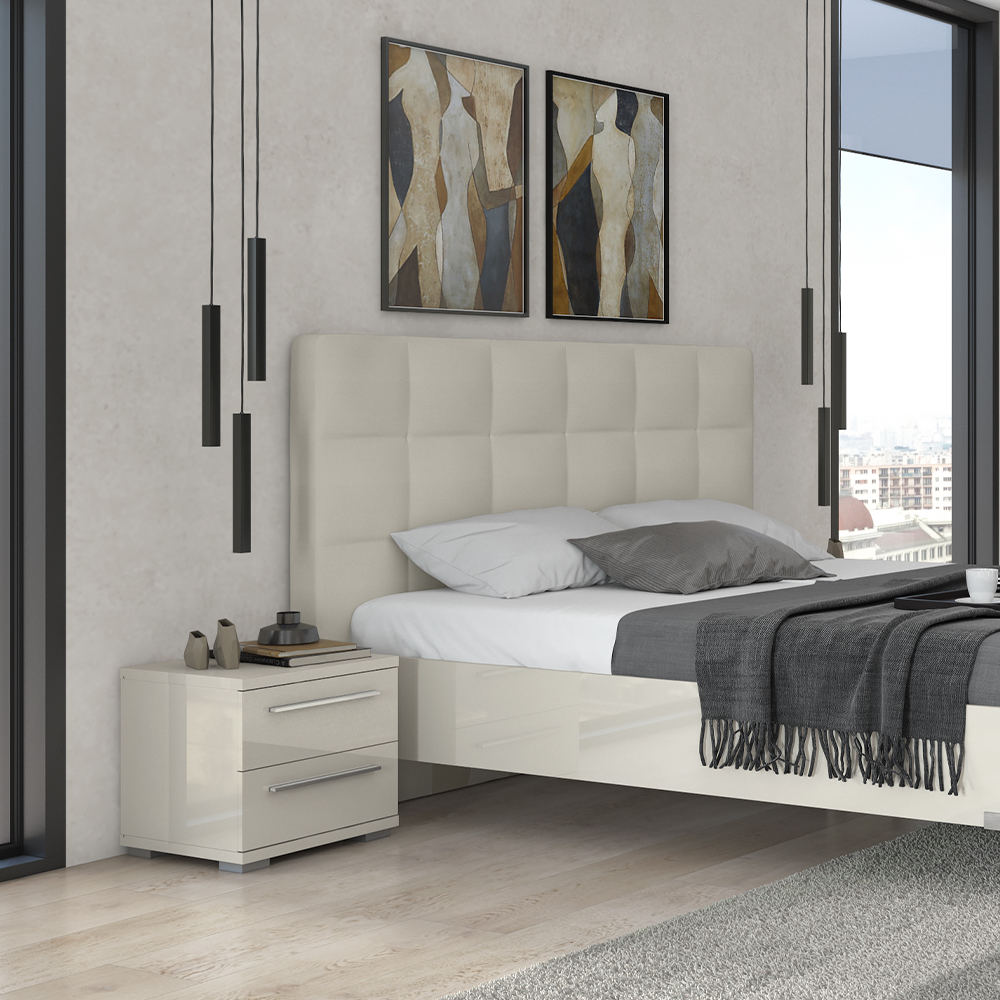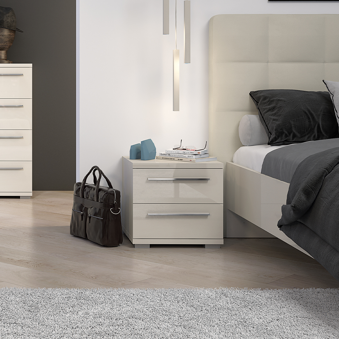 Noćni stočić sa dve fioke, dizajnirane geometrijske forme iz kolekcije nameštaja PIANO.