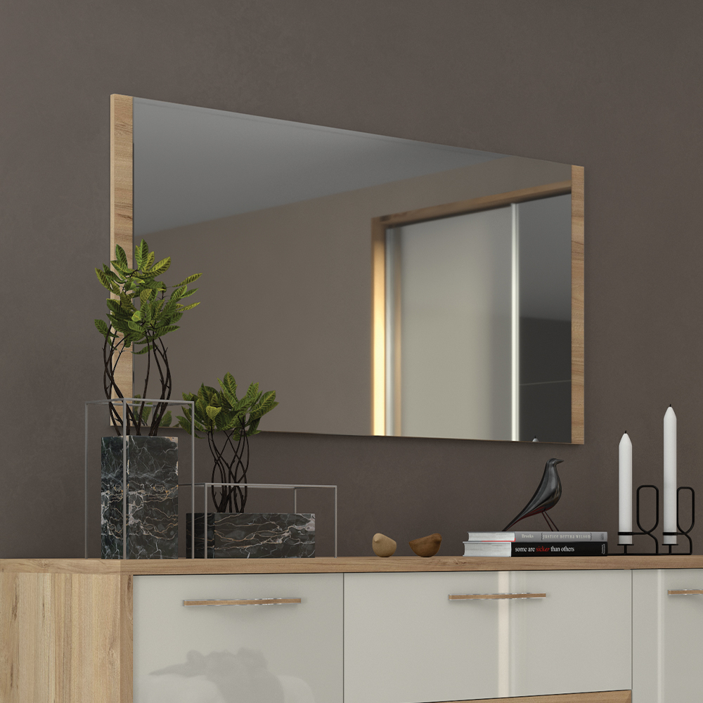 Ogledalo za spavaću sobu, iz kolekcije GALA, sa leđima u drvo-dekoru Pacifik orah.