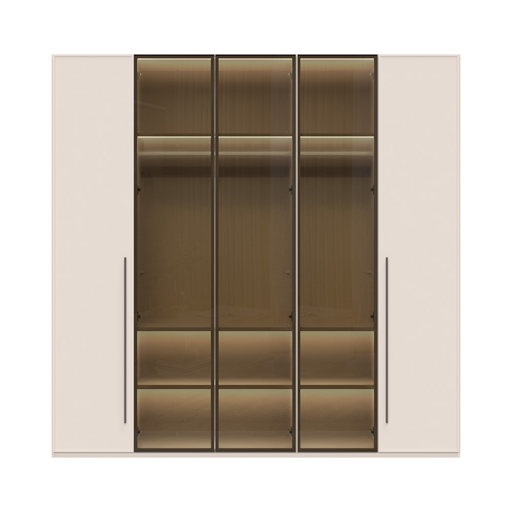 Petokrilni plakar sa dva krila lakirana soft mat UV lakom u boji Kašmir i tri staklena krila iz kolekcije OPERA.