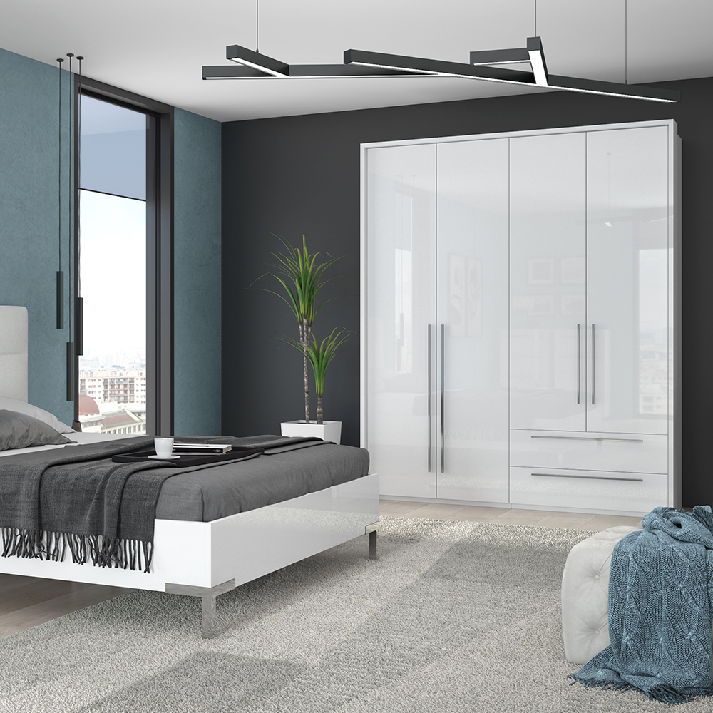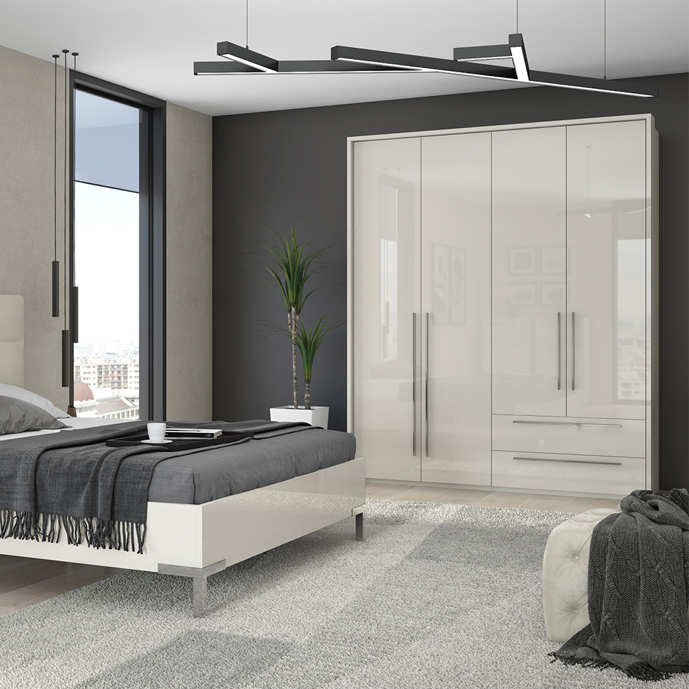 Funkcionalni plakar sa četiri krila i dve fioke sa dekorativnom bočnom i pokrivnom lajsnom iz kolekcije nameštaja PIANO.