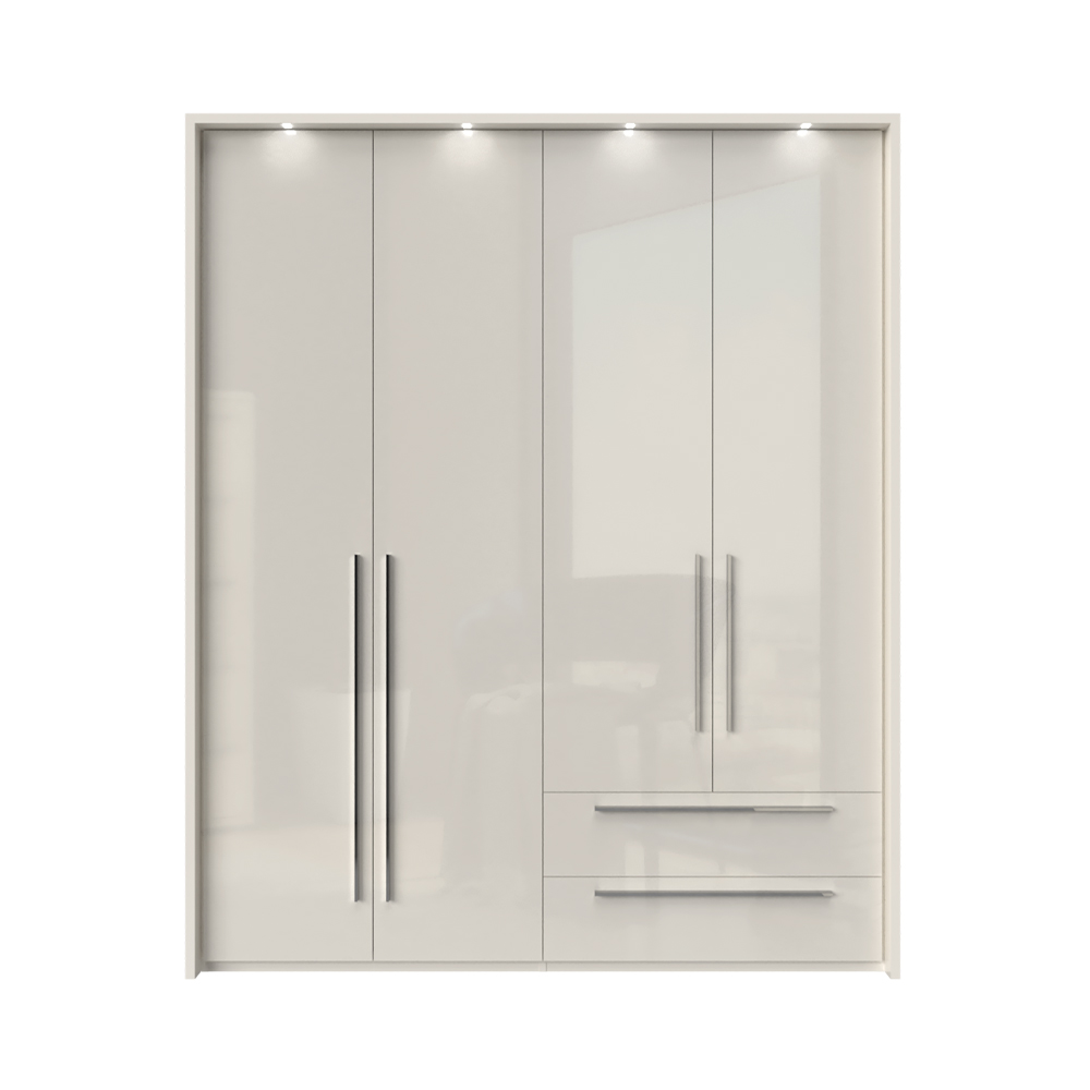 Funkcionalni plakar sa četiri krila i dve fioke sa dekorativnom bočnom i pokrivnom lajsnom sa rasvetom iz kolekcije nameštaja PIANO.