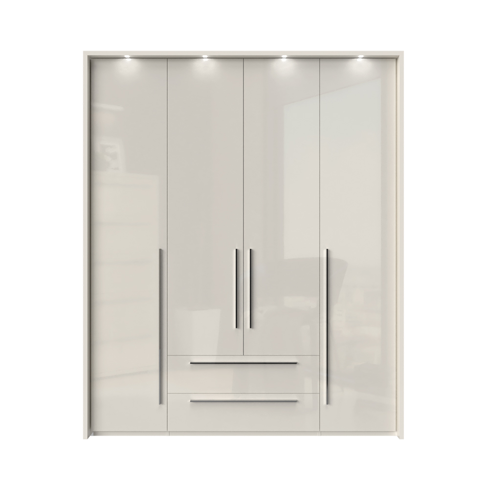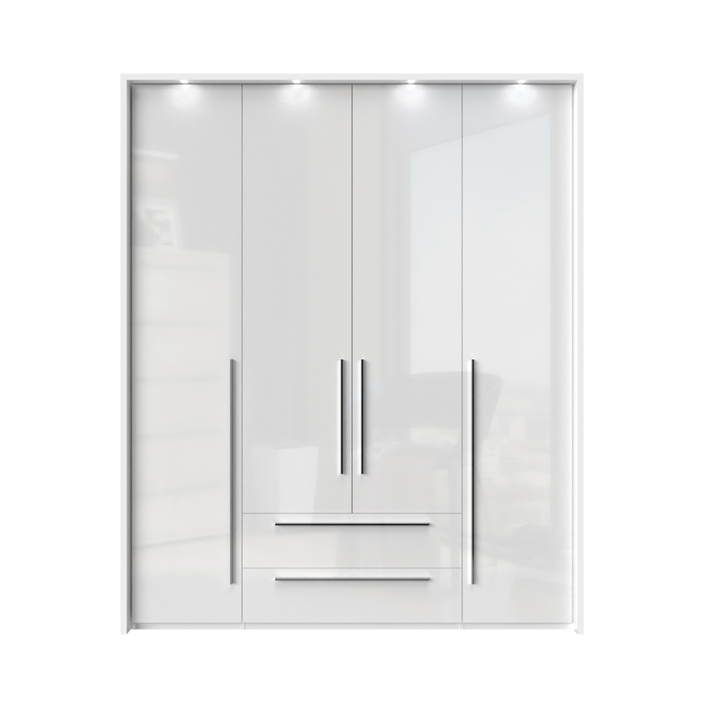 Funkcionalni plakar sa četiri krila i dve fioke sa dekorativnom bočnom i pokrivnom lajsnom sa rasvetom iz kolekcije nameštaja PIANO.