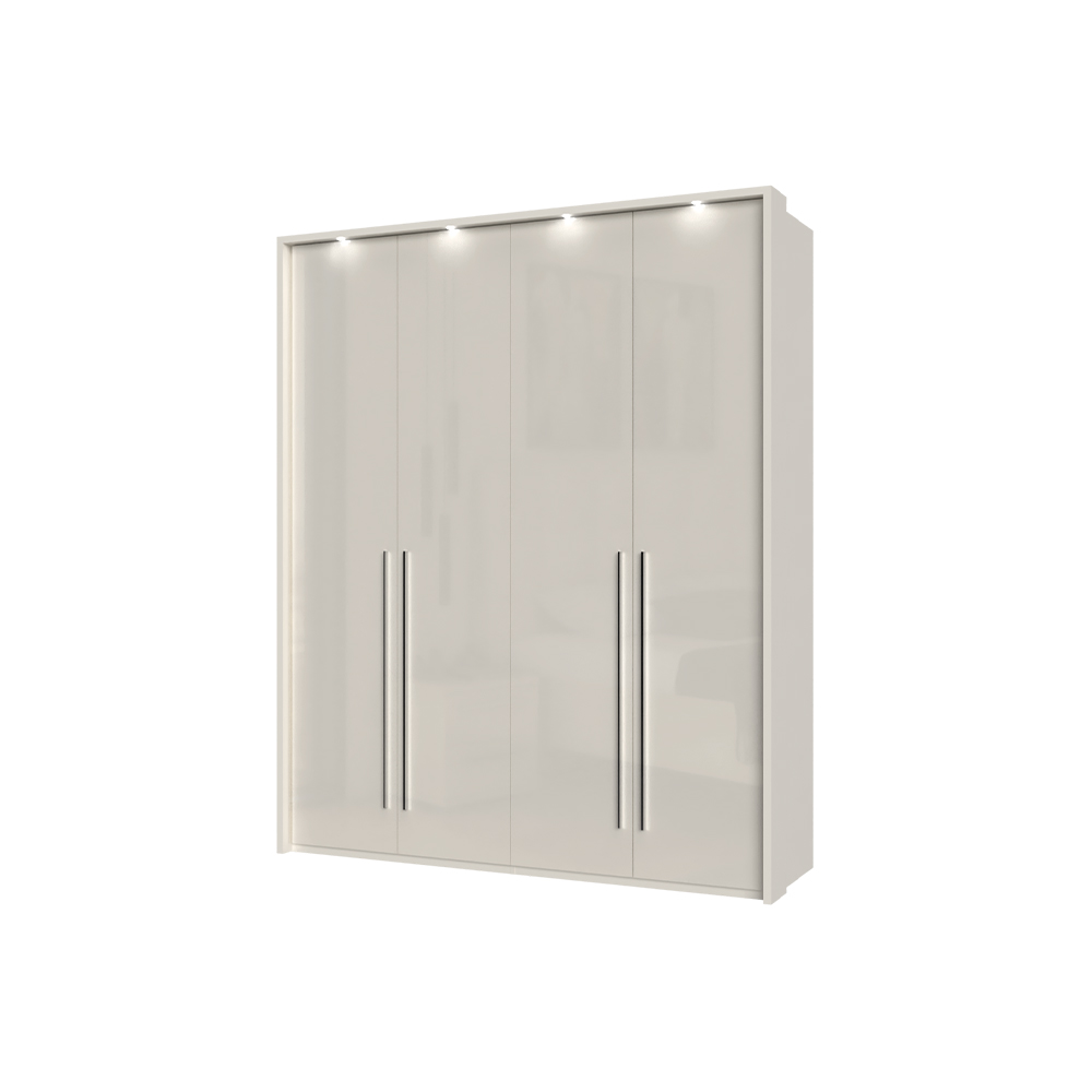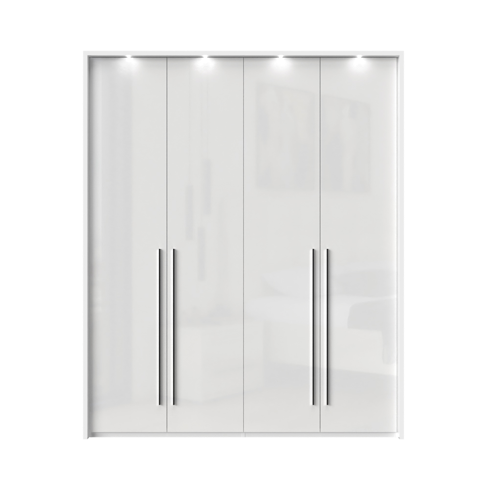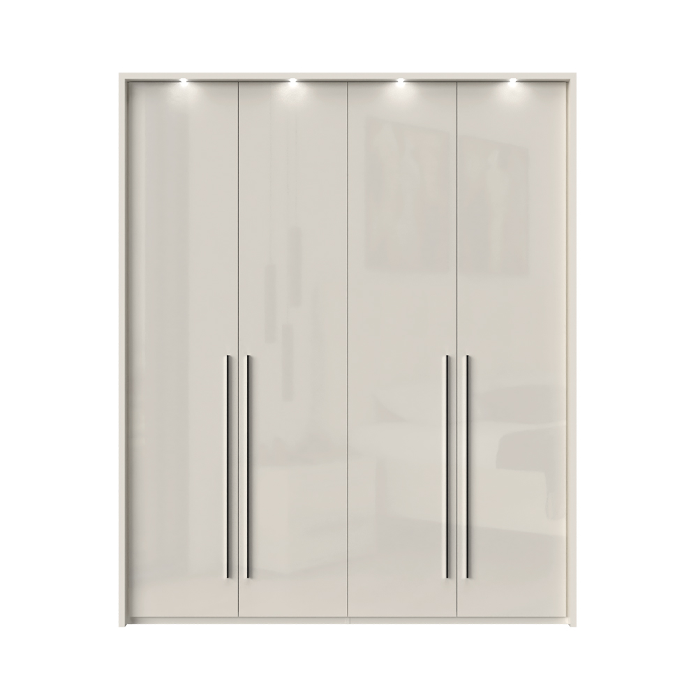 Funkcionalan četvorokrilni plakar dizajnirane geometrijske forme iz kolekcije nameštaja PIANO sa dekorativnom bočnom i pokrivnom lajsnom sa rasvetom.