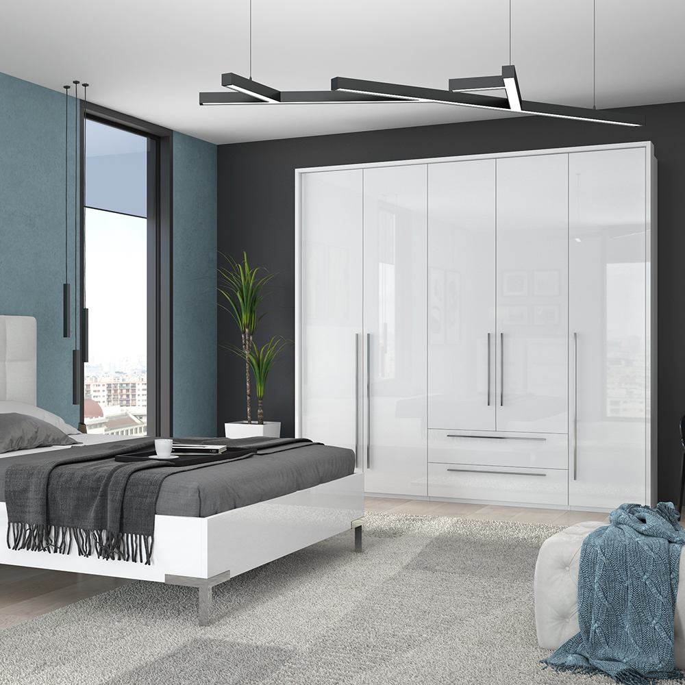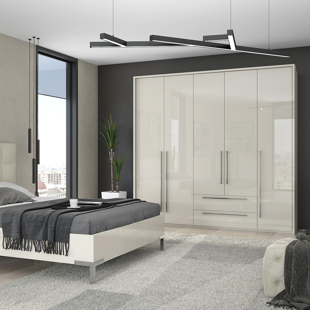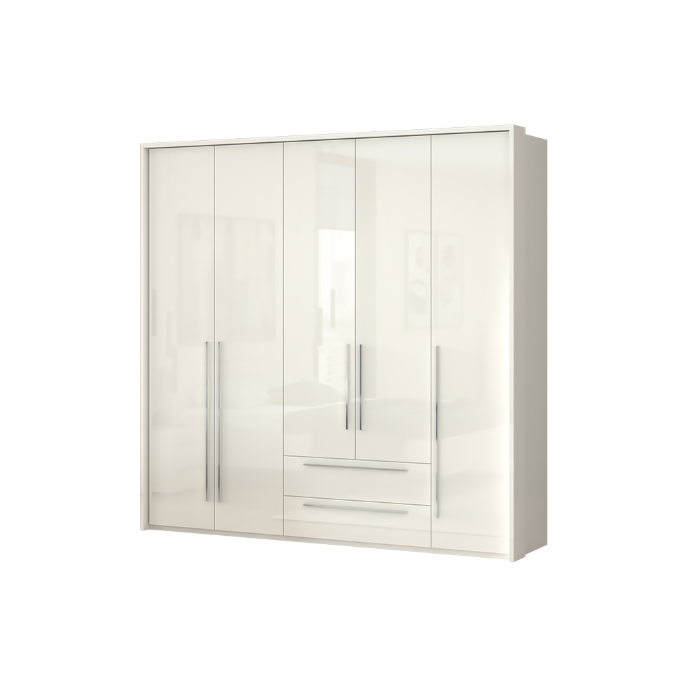 Funkcionalni plakar sa pet krila i dve fioke sa dekorativnom bočnom i pokrivnom lajsnom iz kolekcije nameštaja PIANO.