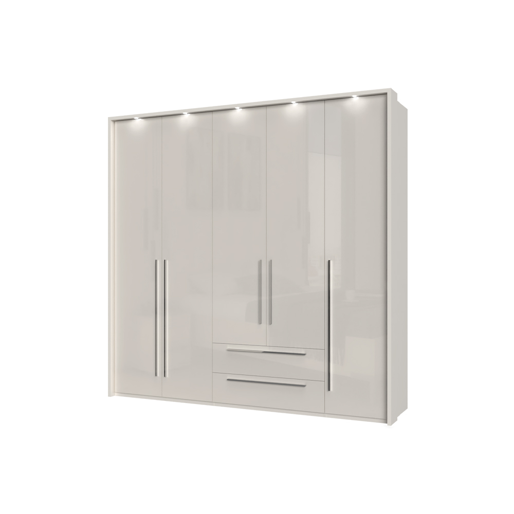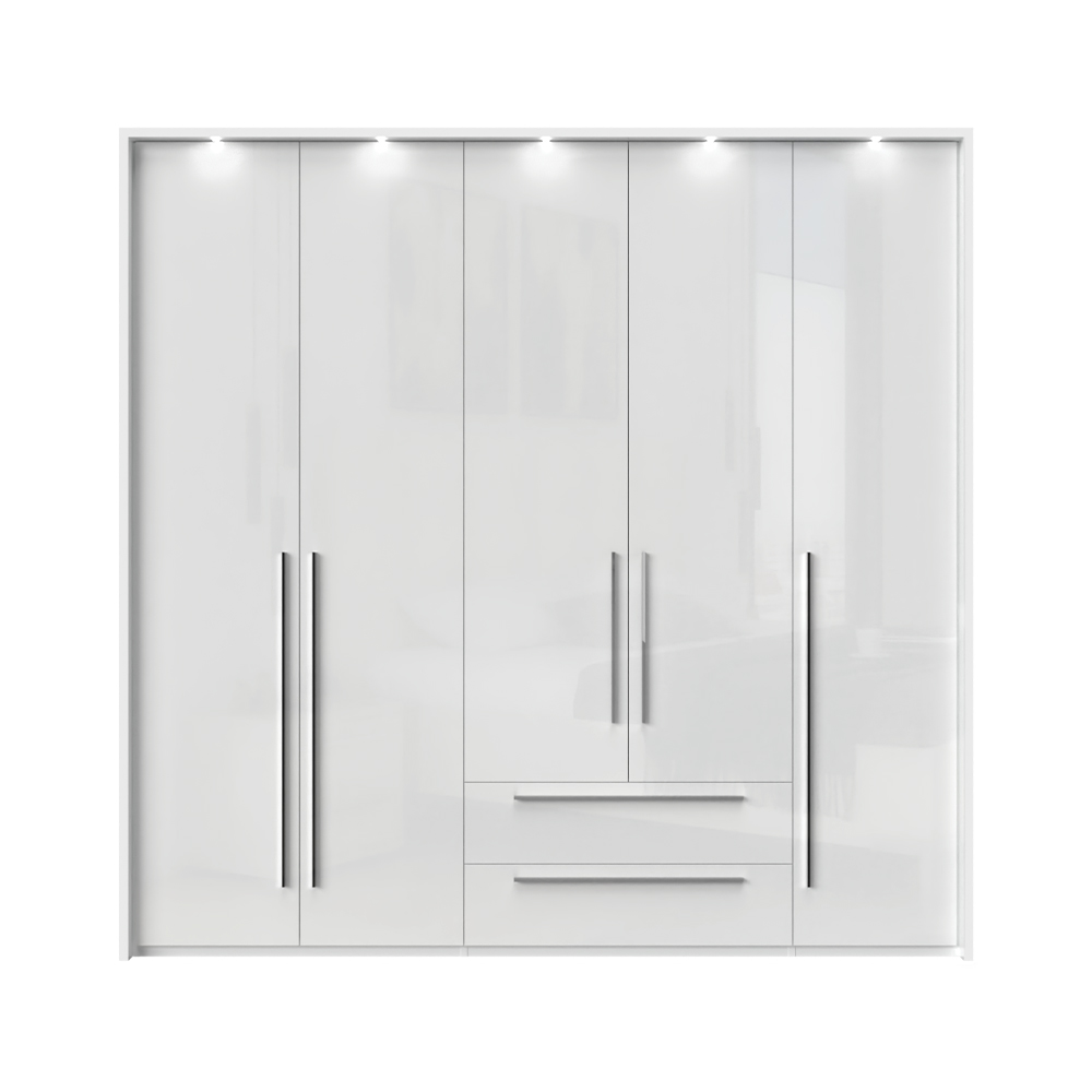 Funkcionalni plakar sa pet krila i dve fioke sa dekorativnom bočnom i pokrivnom lajsnom sa rasvetom iz kolekcije nameštaja PIANO.