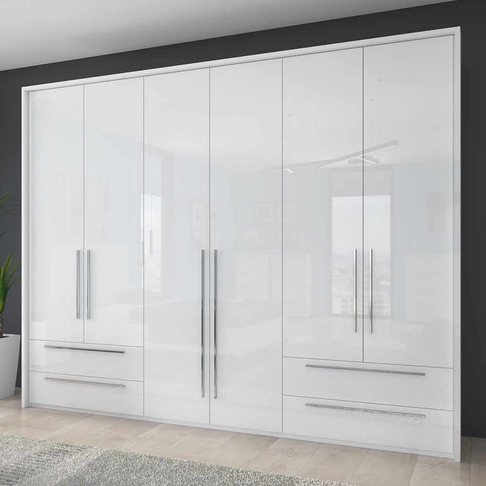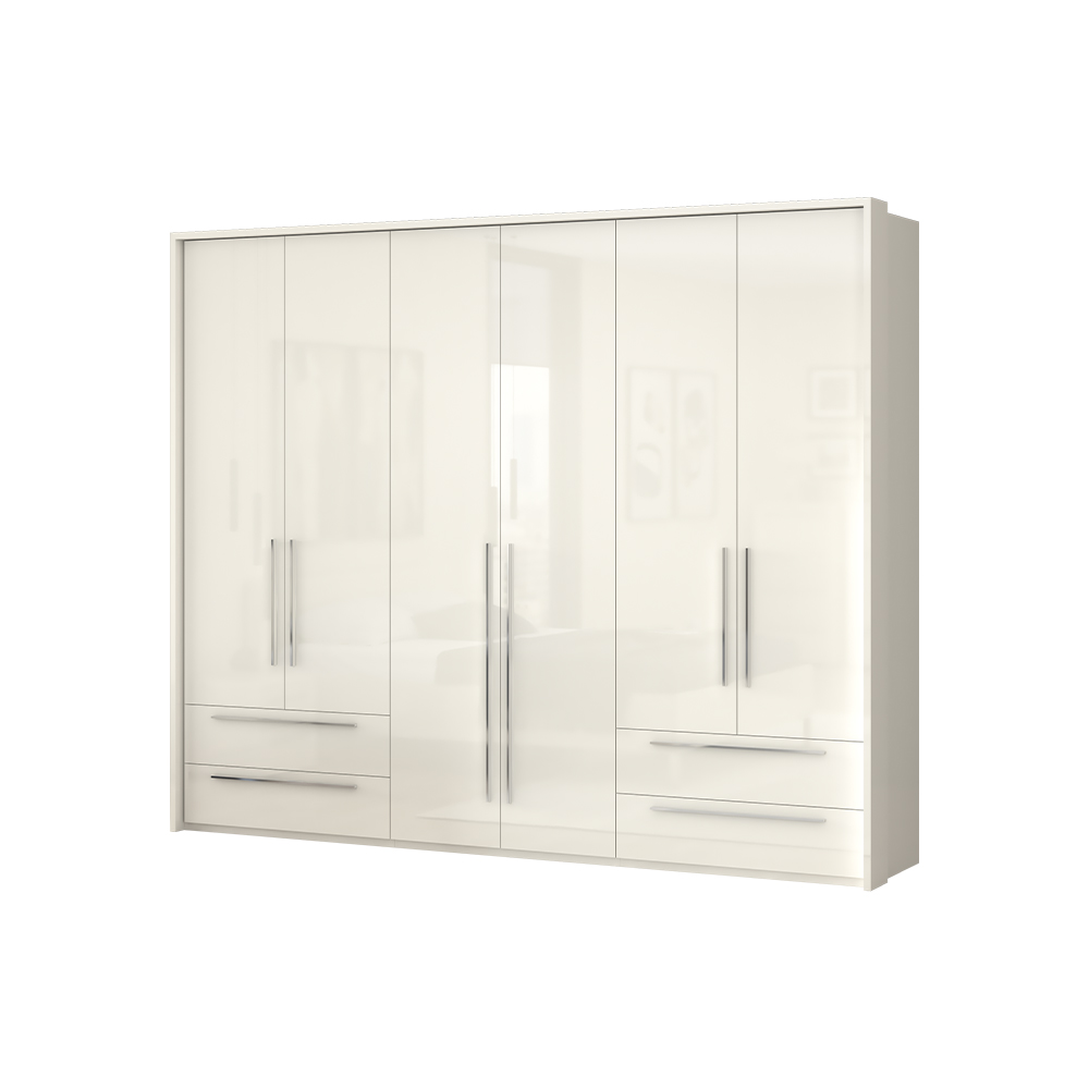 Funkcionalni plakar sa šest krila i četiri fioke sa dekorativnom bočnom i pokrivnom lajsnom iz kolekcije nameštaja PIANO.