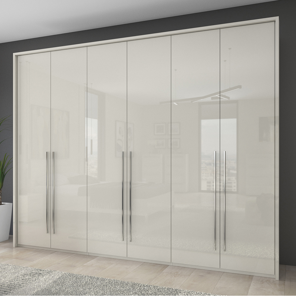 Funkcionalan šestokrilni plakar dizajnirane geometrijske forme iz kolekcije nameštaja PIANO sa dekorativnom bočnom i pokrivnom lajsnom.