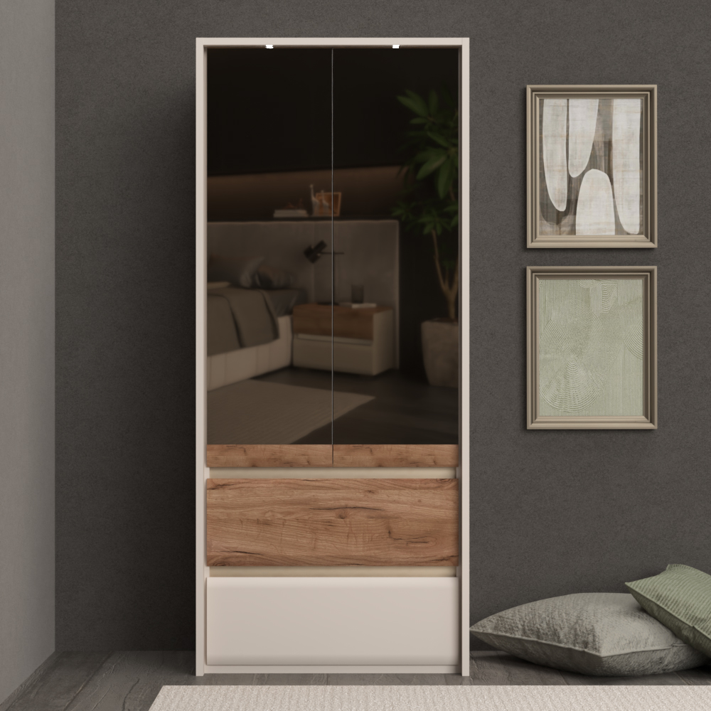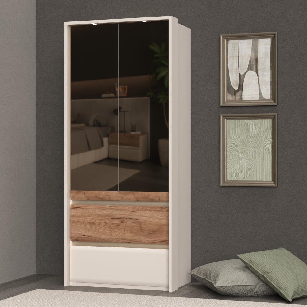 Plakar za spavaću sobu iz prestižne kolekcije INVICTUS sa dva krila sa ogledalima i dve fioke skladne i meke forme frontova.