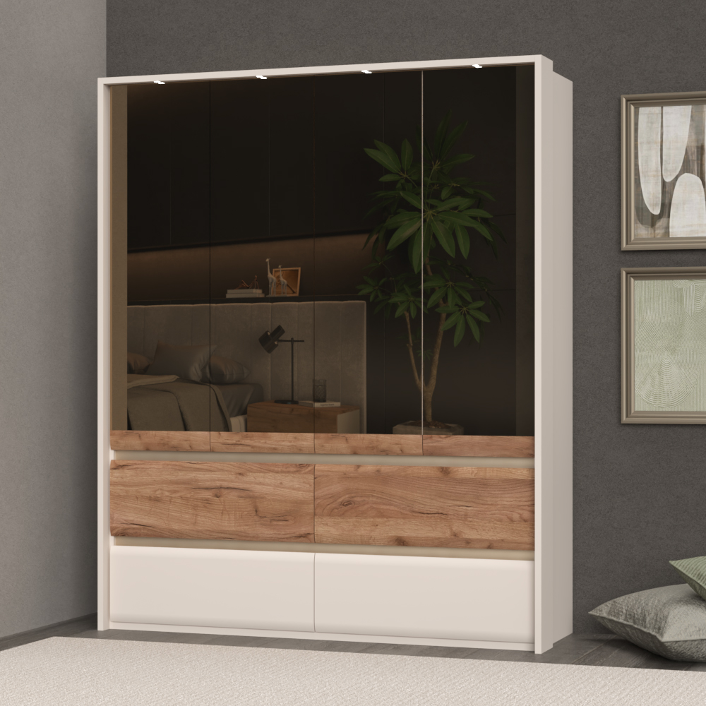 Plakar za spavaću sobu iz prestižne kolekcije INVICTUS sa četiri krila sa ogledalima i četiri fioke skladne i meke forme frontova.