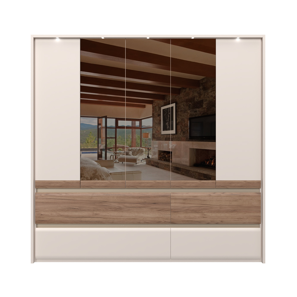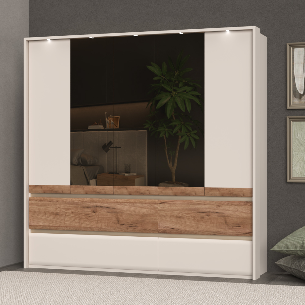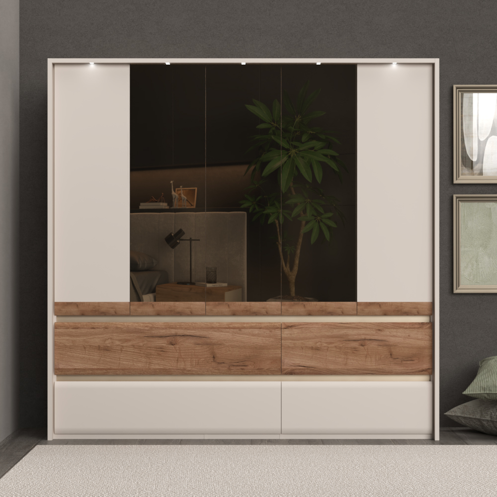 Plakar za spavaću sobu iz prestižne kolekcije INVICTUS sa pet krila, od kojih su tri sa ogledalima i četiri fioke skladne i meke forme frontova.