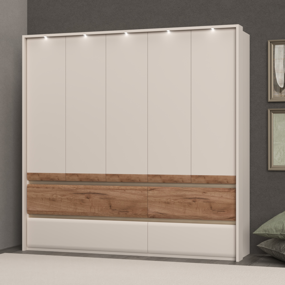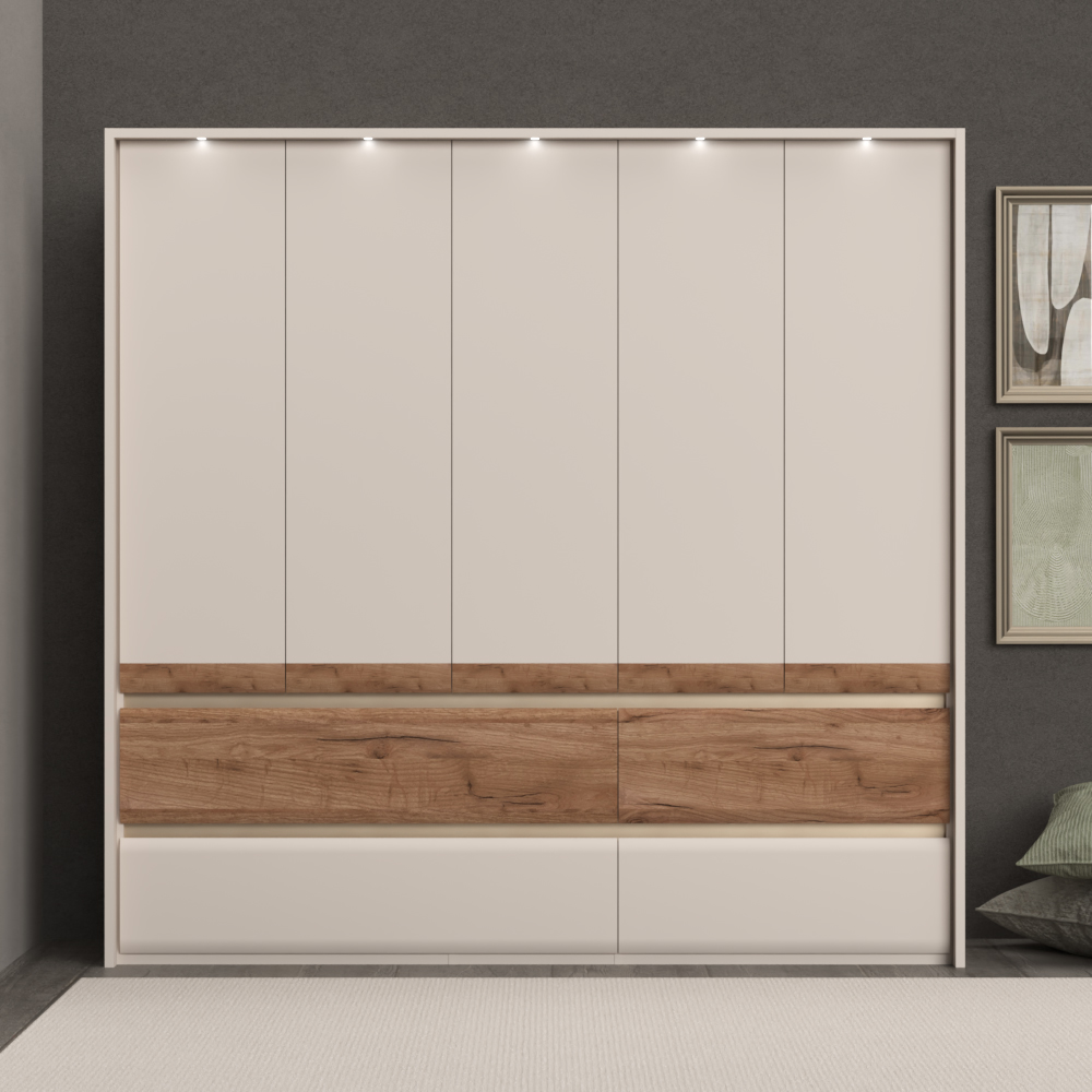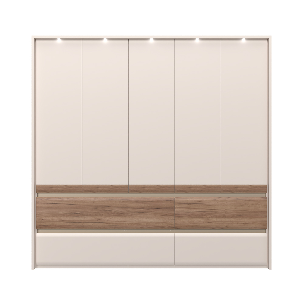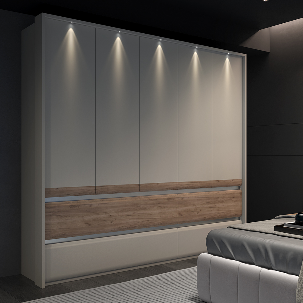 Plakar za spavaću sobu iz prestižne kolekcije INVICTUS sa pet krila i četiri fioke skladne i meke forme frontova.