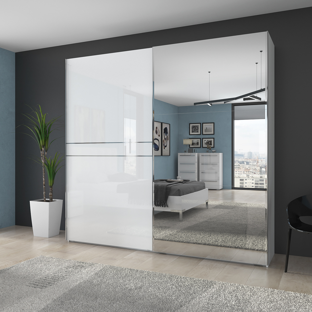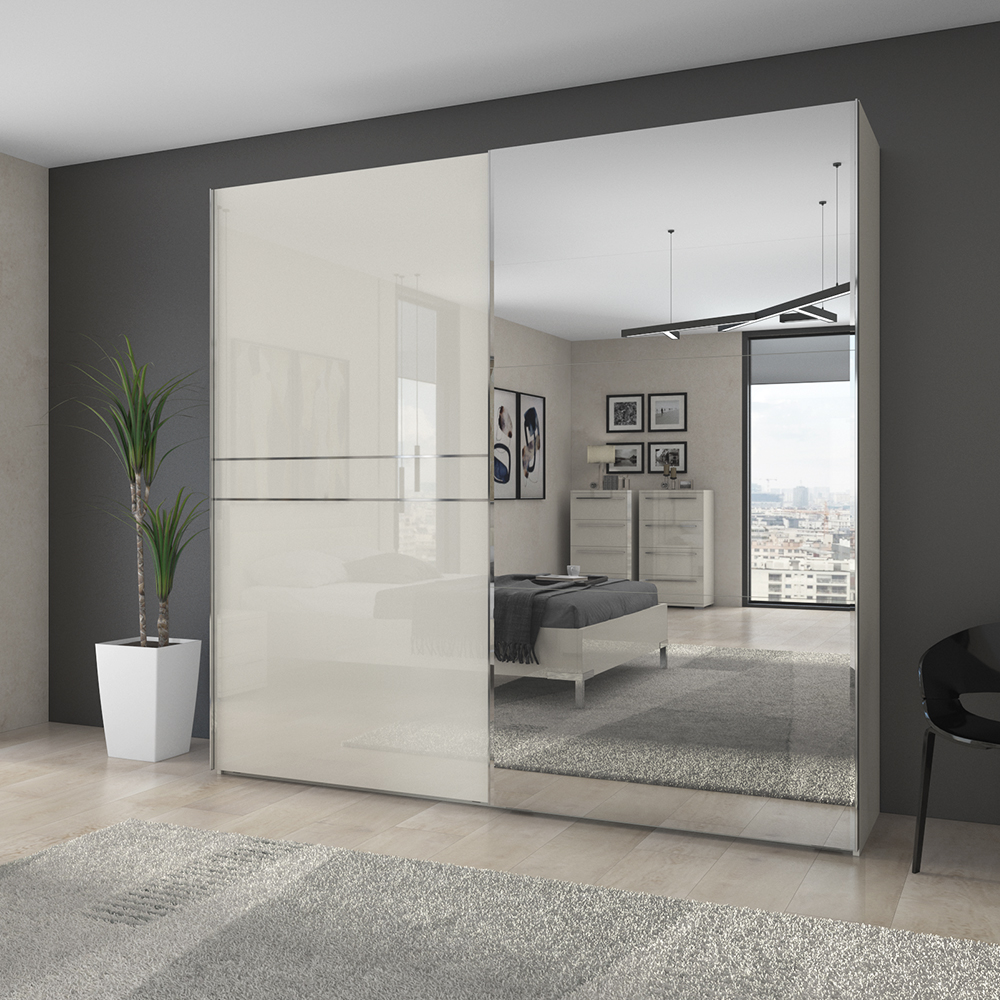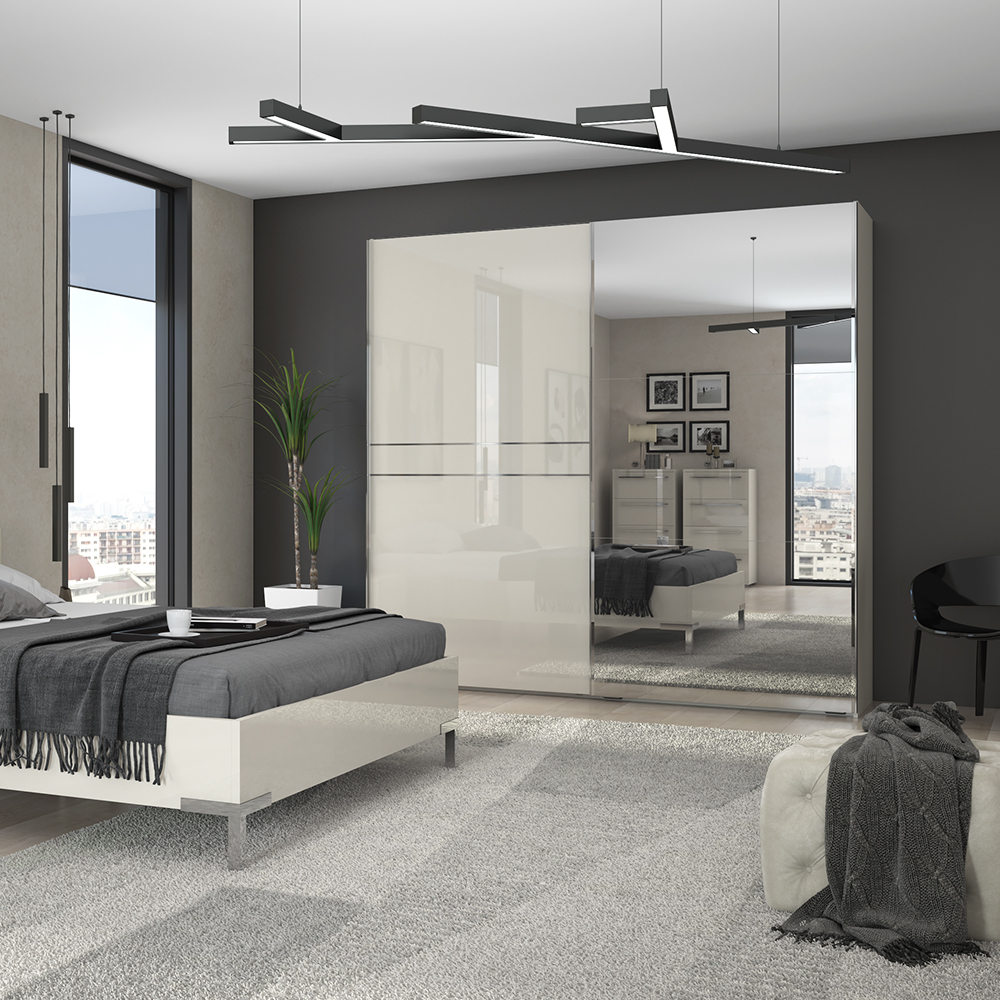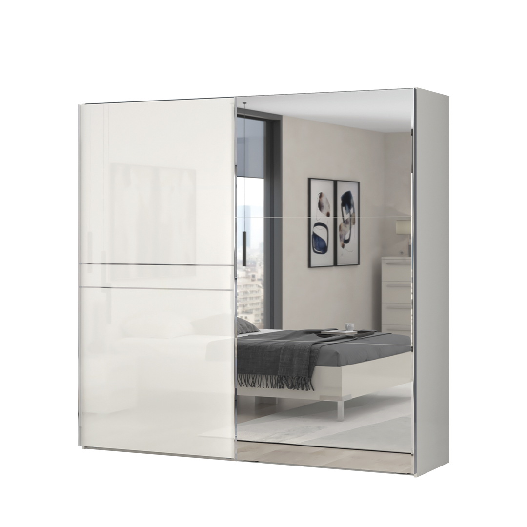 Dvokrilni klizni plakar sa ogledalom na jednom krilu dizajnirane geometrijske forme iz kolekcije nameštaja PIANO.