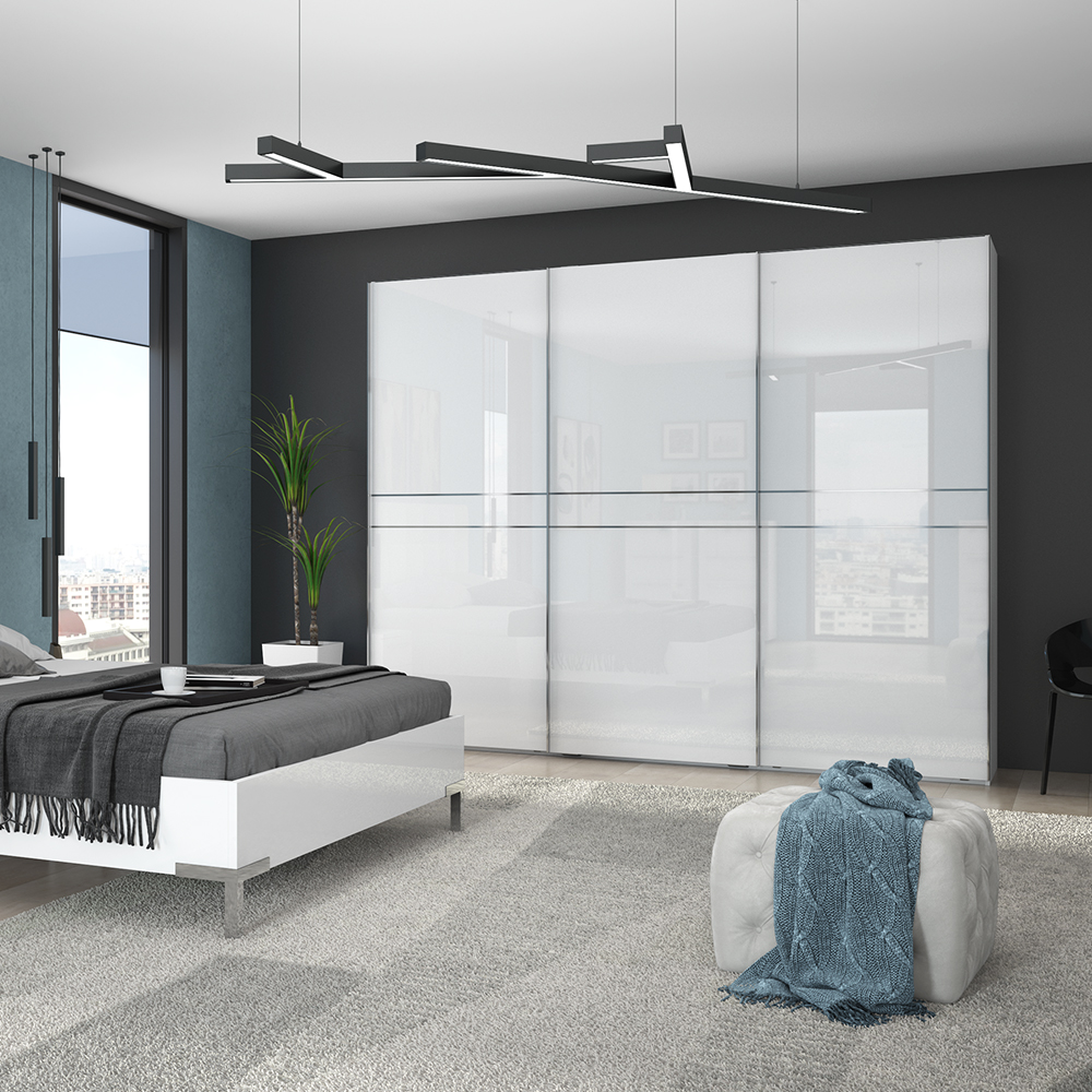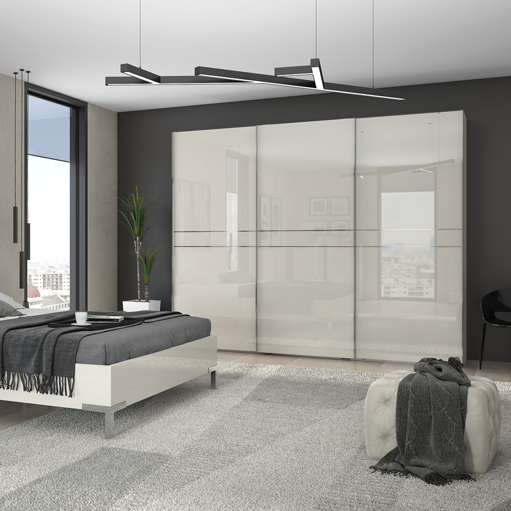 Trokrilni klizni plakar dizajnirane geometrijske forme iz kolekcije nameštaja PIANO.