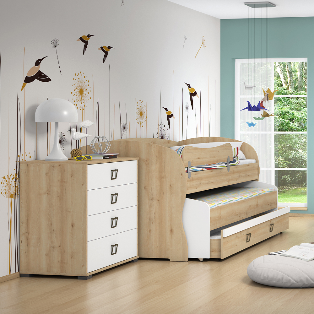 Dupli krevet za dečiju sobu, iz kolekcije KIKI, za maksimalnu uštedu prostora. Uz ovaj model kreveta vaša deca mogu menjati raspored u svojoj sobi kad god požele.