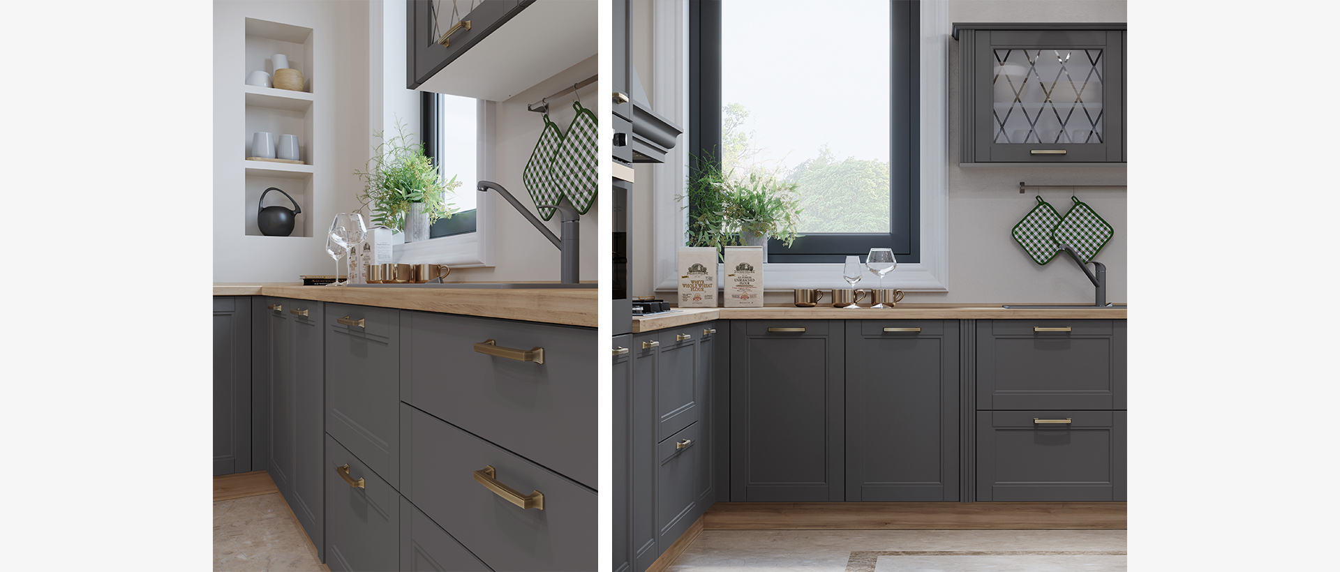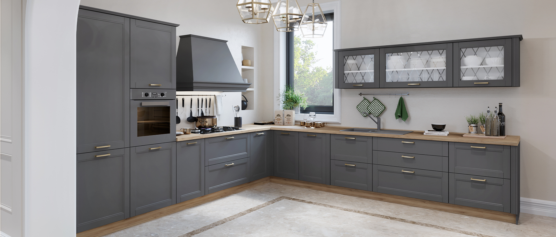 Kuhinja Tara sa frontovima od medijapana u Grafit sivoj ili Beloj boji, lakirana UV mat lakom