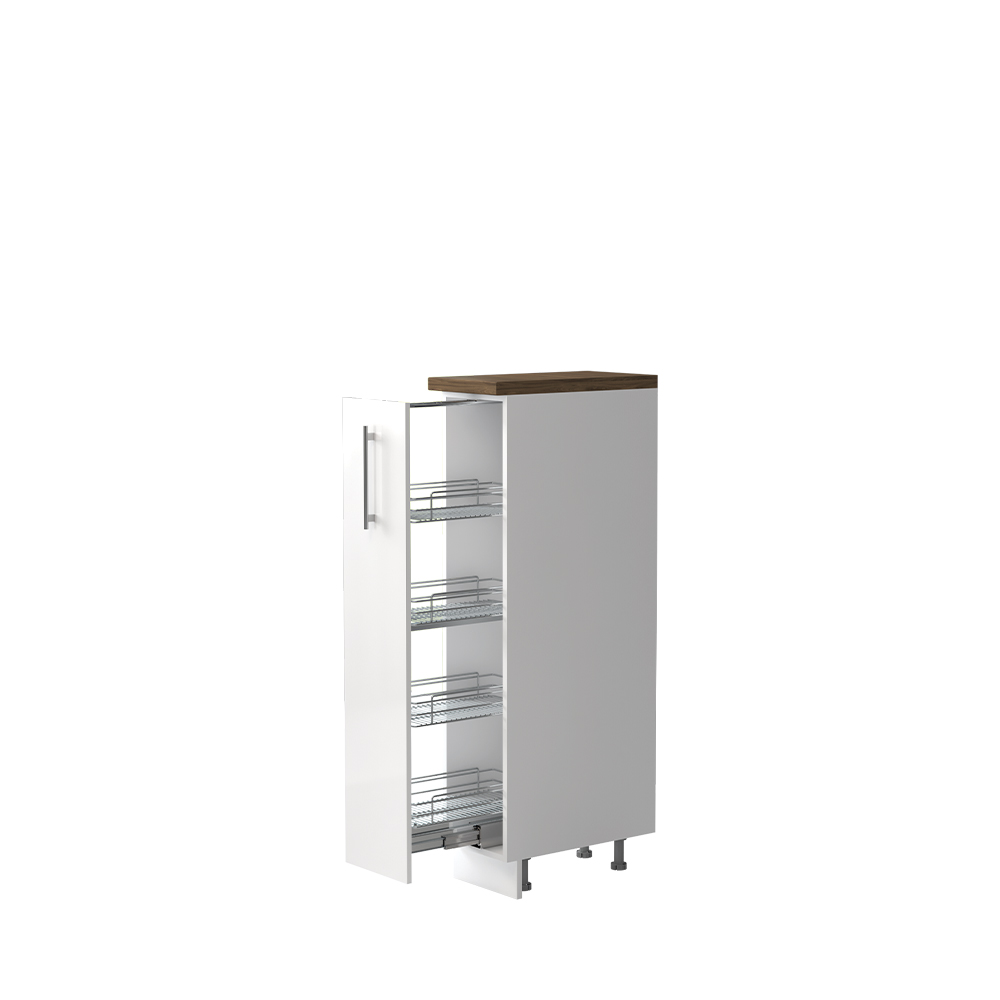 Kombinovani kuhinjski element sa jednim krilom i sa ugradnim hromiranim žičanim mehanizmom sa korpama za odlaganje, širine 30 cm.