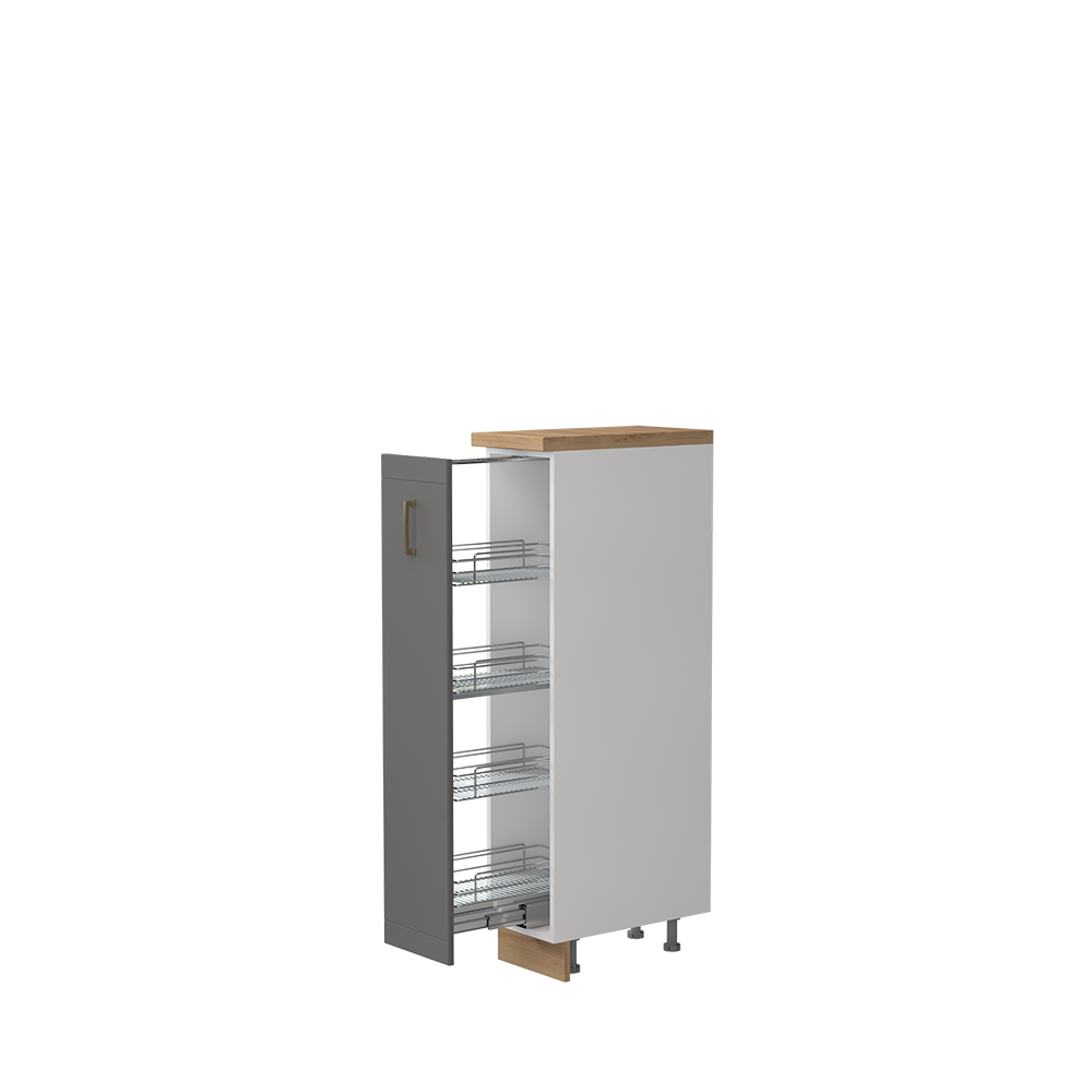 Kombinovani kuhinjski element sa jednim krilom i sa ugradnim hromiranim žičanim mehanizmom sa korpama za odlaganje, širine 30 cm.