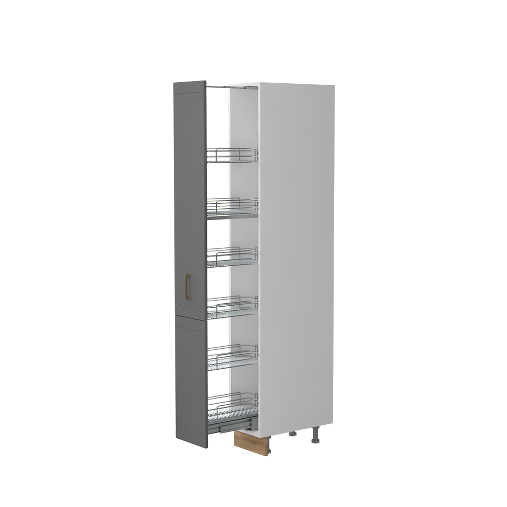 Kombinovani kuhinjski element sa jednim krilom i sa ugradnim hromiranim žičanim mehanizmom sa korpama za odlaganje, širine 30 cm.