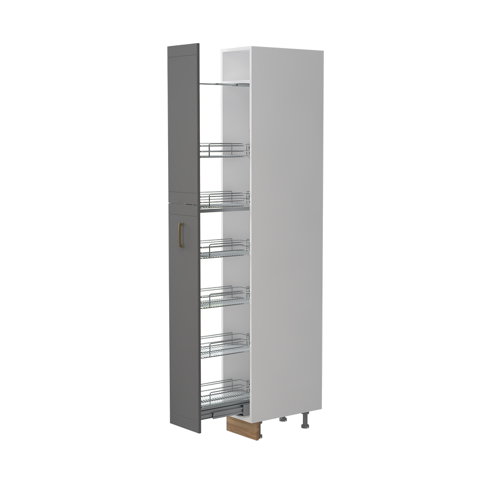 Kombinovani kuhinjski element sa jednim krilom i sa ugradnim hromiranim žičanim mehanizmom sa korpama za odlaganje, širine 30 cm.
