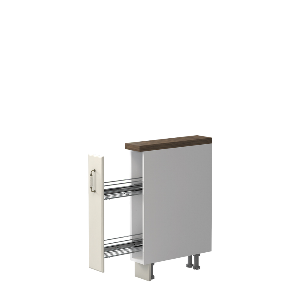 Kuhinjski radni element sa jednim krilom i žičanom korpom na izvlačenje, širine 15 cm.