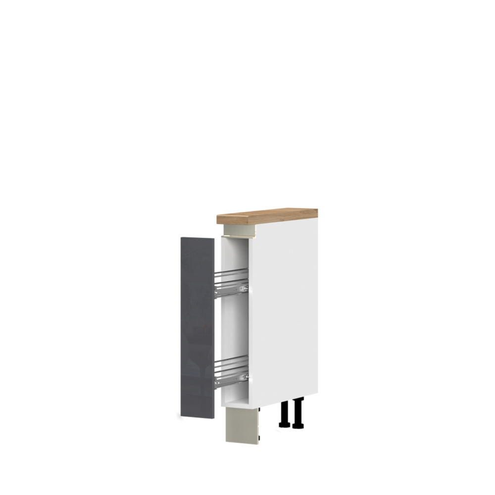 Kuhinjski radni element sa jednim krilom i hromiranom žičanom korpom za odlaganje, širine 15 cm, na izvlačenje.
