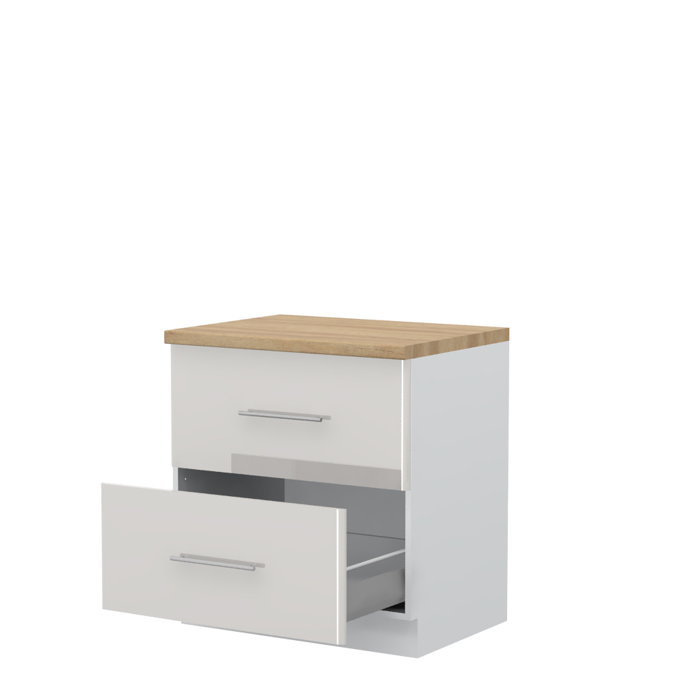 Radni kuhinjski element sa dve metal-box fioke sa punim izvlačenjem, čija je nosivost do 30 kilograma, širine 80 cm.