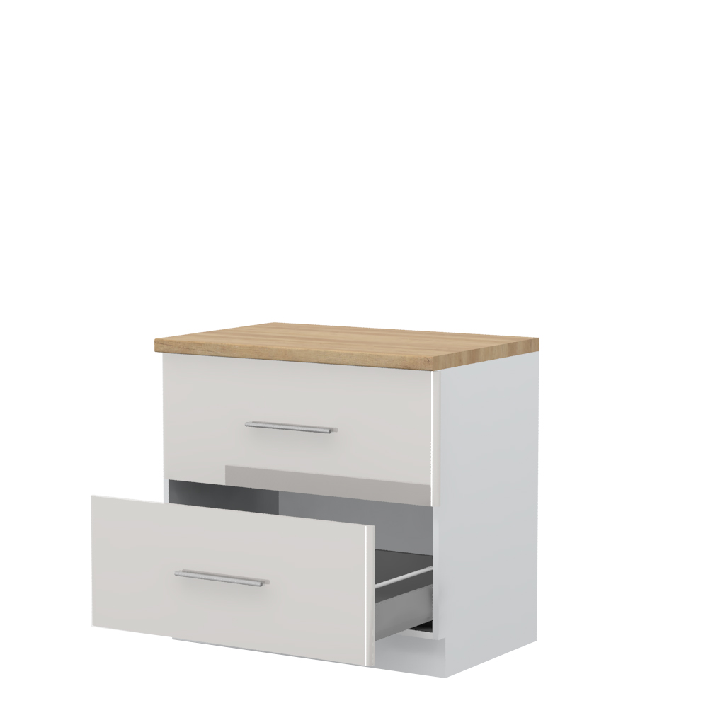Radni kuhinjski element sa dve metal-box fioke sa punim izvlačenjem, čija je nosivost do 30 kilograma, širine 90 cm.