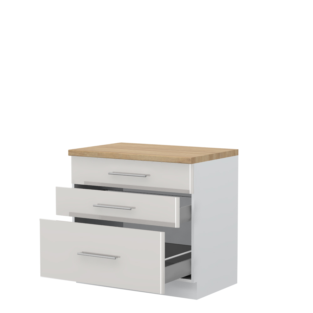 Radni kuhinjski element sa tri metal-box fioke, čija je nosivost do 30 kilograma, širine 90 cm.