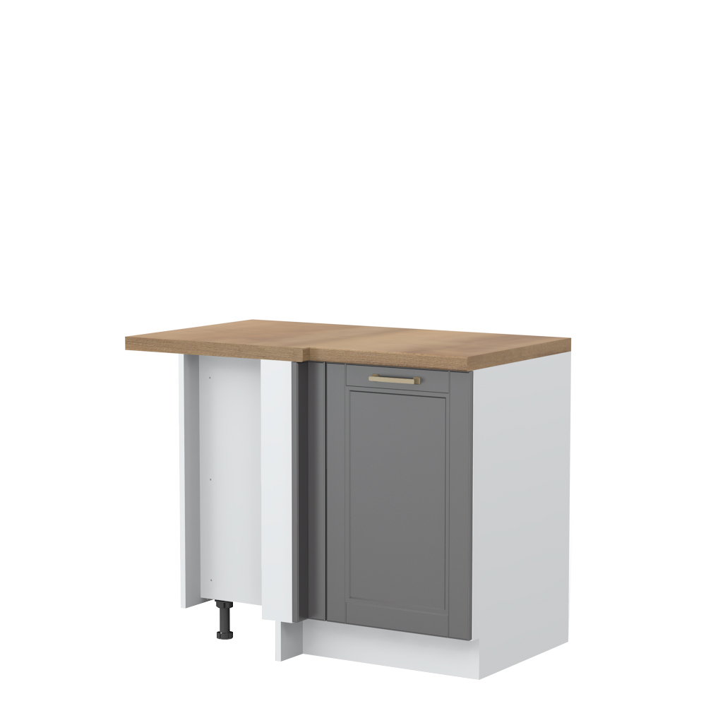 Radni ugaoni kuhinjski element sa jednim krilom širine 45 cm i jednim fahom, korpus širine 90 cm.