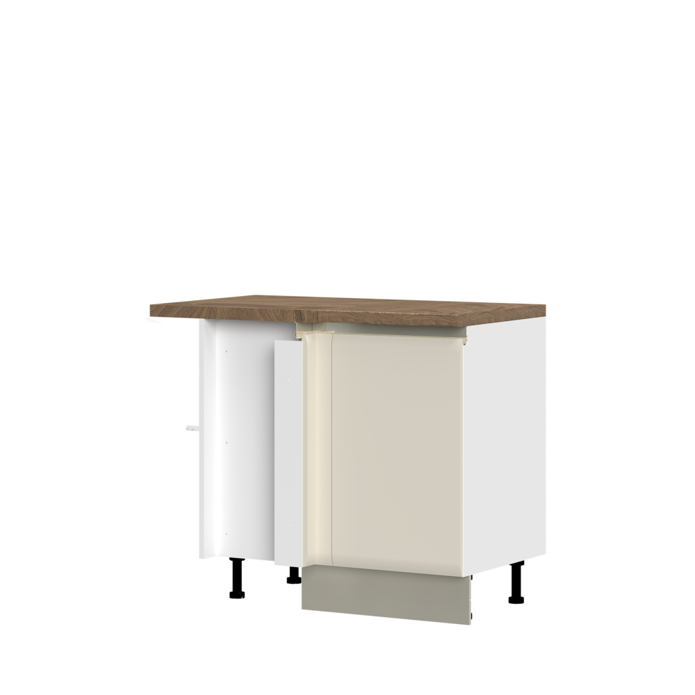 Radni ugaoni kuhinjski element sa jednim krilom i jednim fahom. Krilo se otvara na desnu stranu.