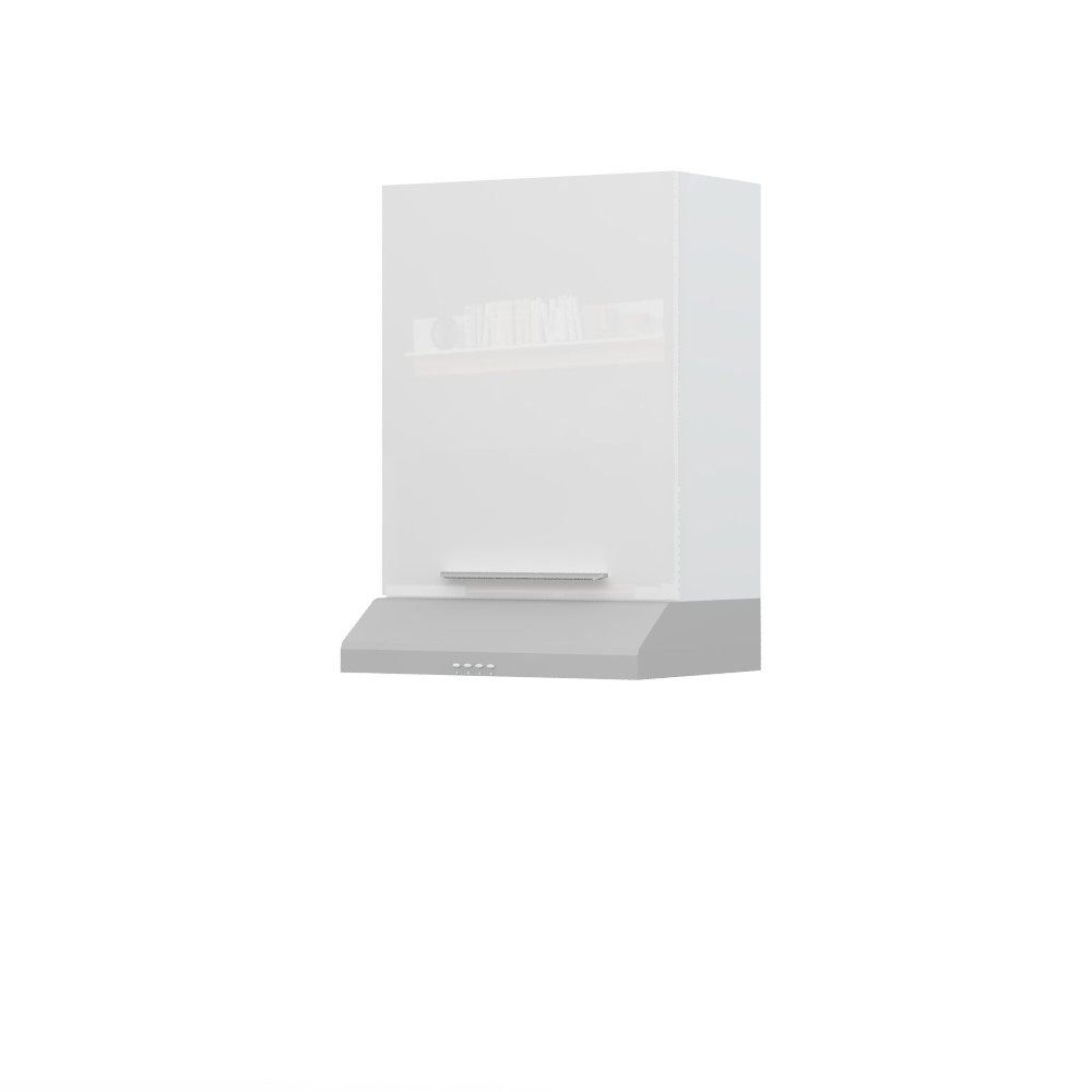 Viseći kuhinjski element sa jednim krilom i dva faha, predviđen za postavljanje standardnog niskog ugradnog aspiratora.