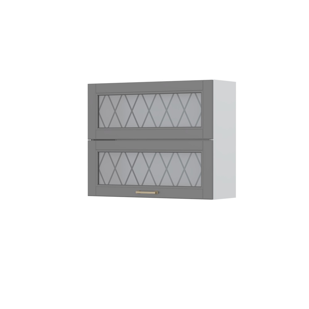 Viseći element sa dva staklena krila i jednom fahom, širine 90cm. Krila se otvaraju na gore.
