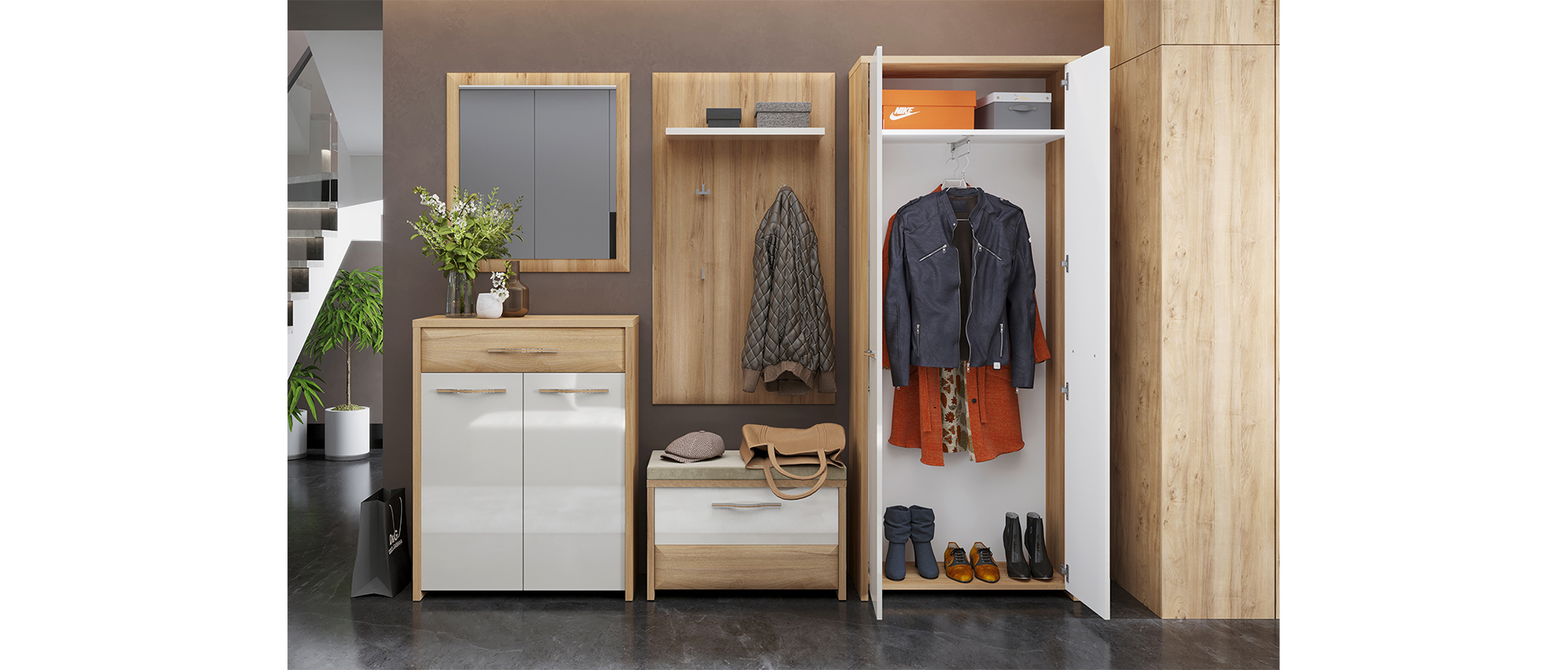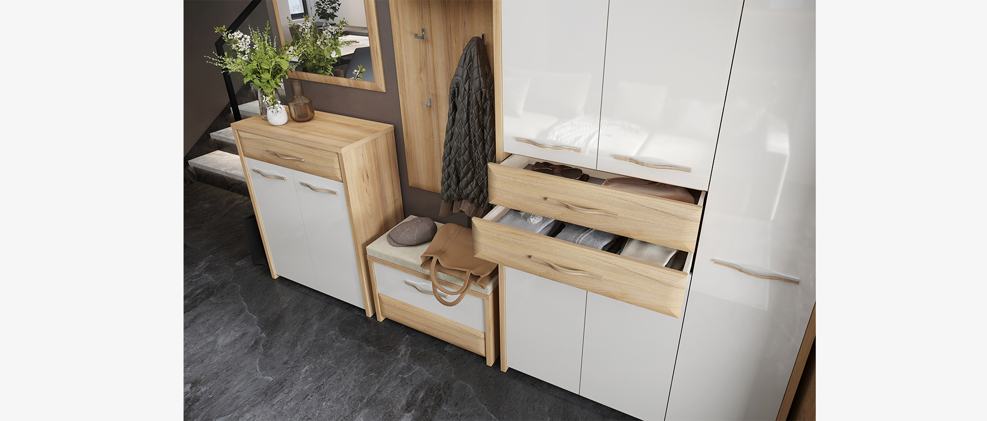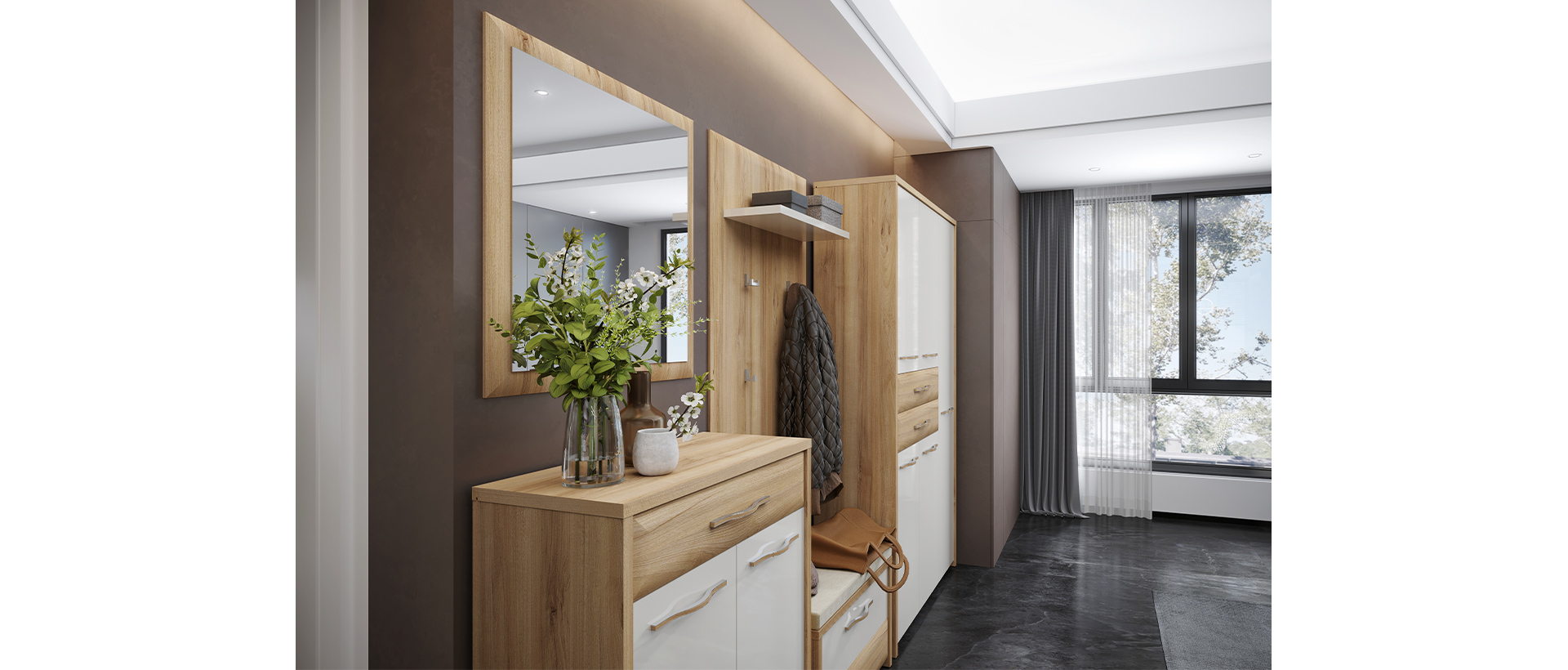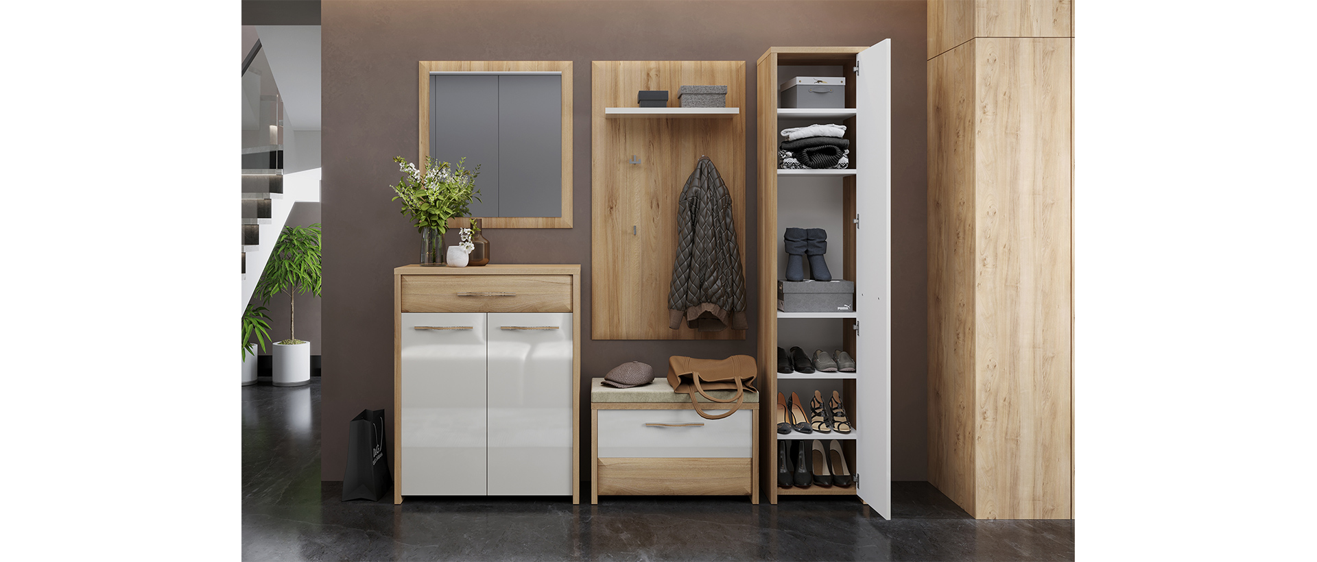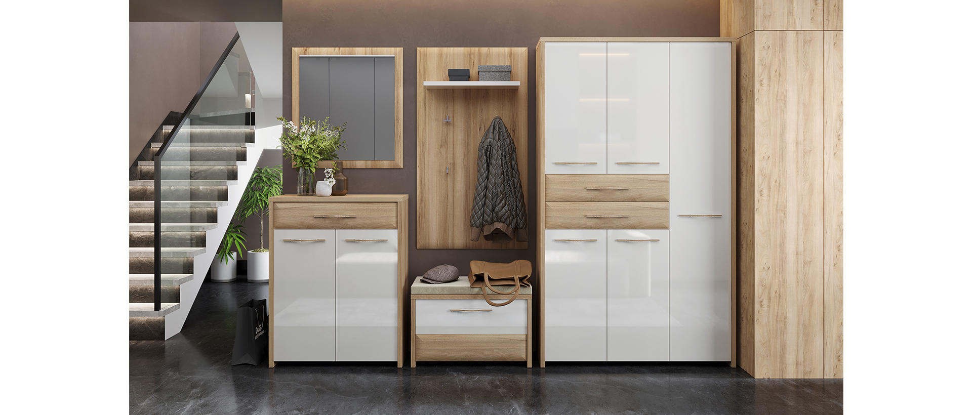 Predsoblje Gala lakirano UV lakom u kombinaciji bež boje i drvo dekora Pacifik orah