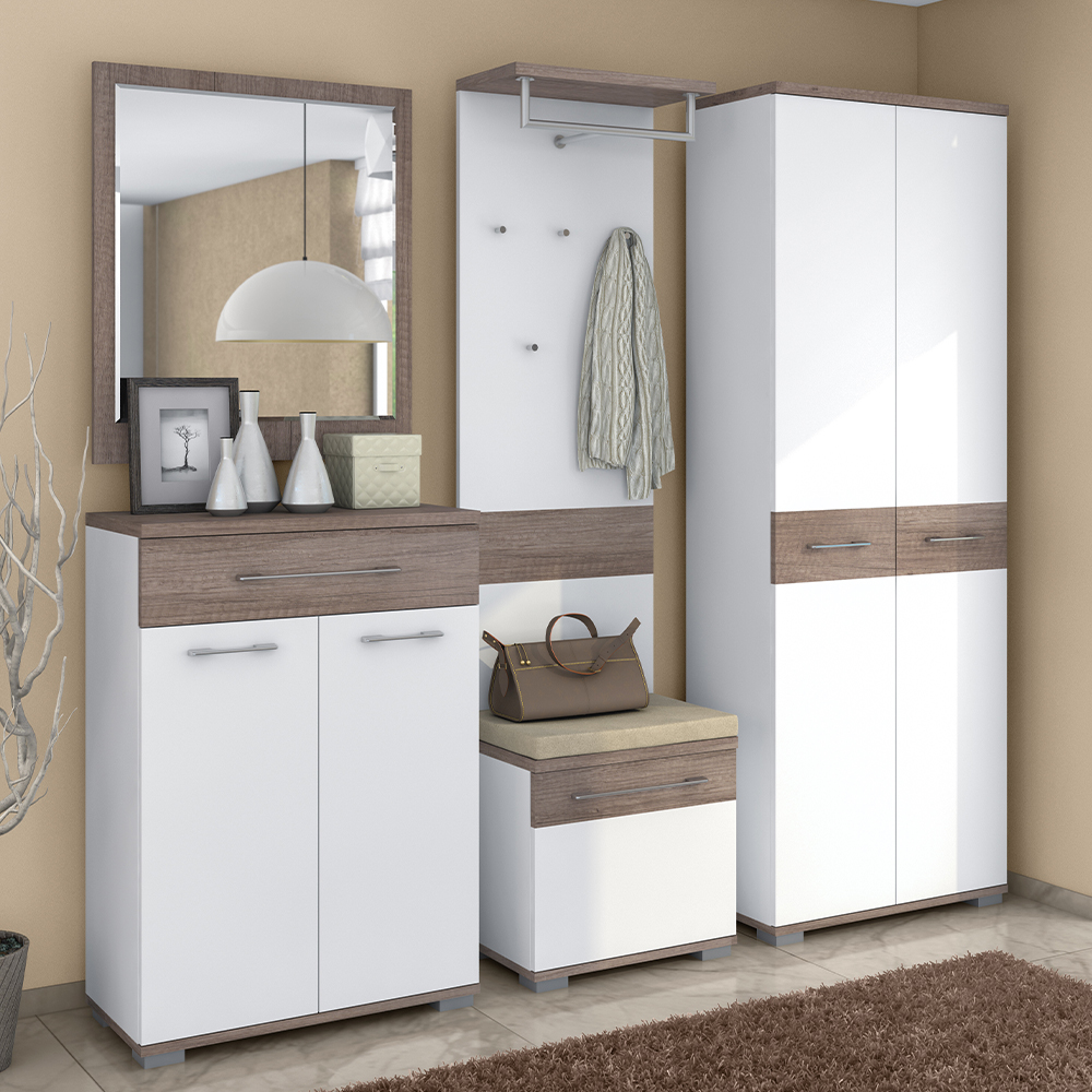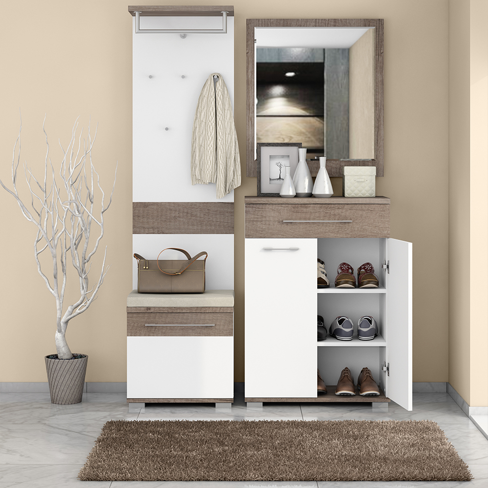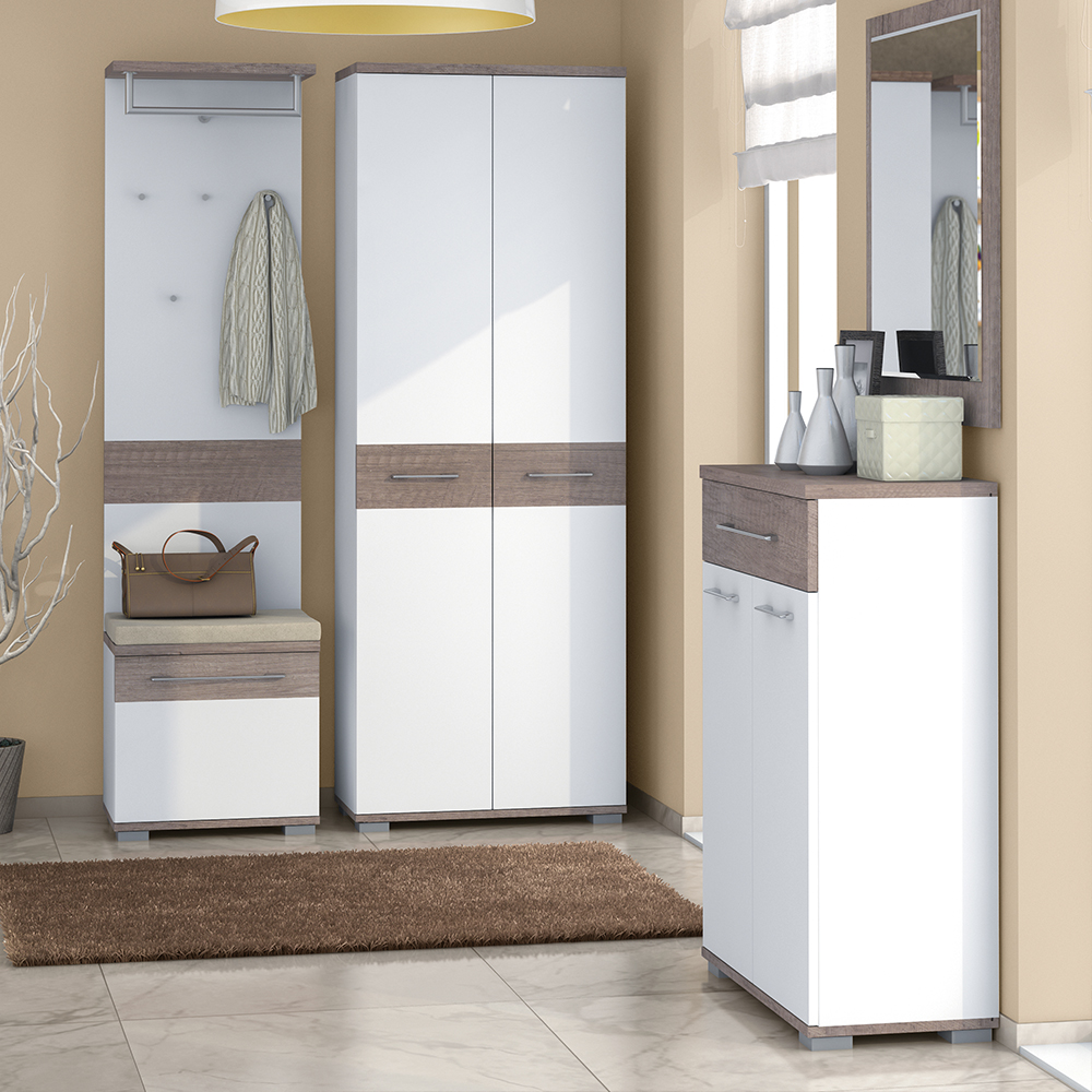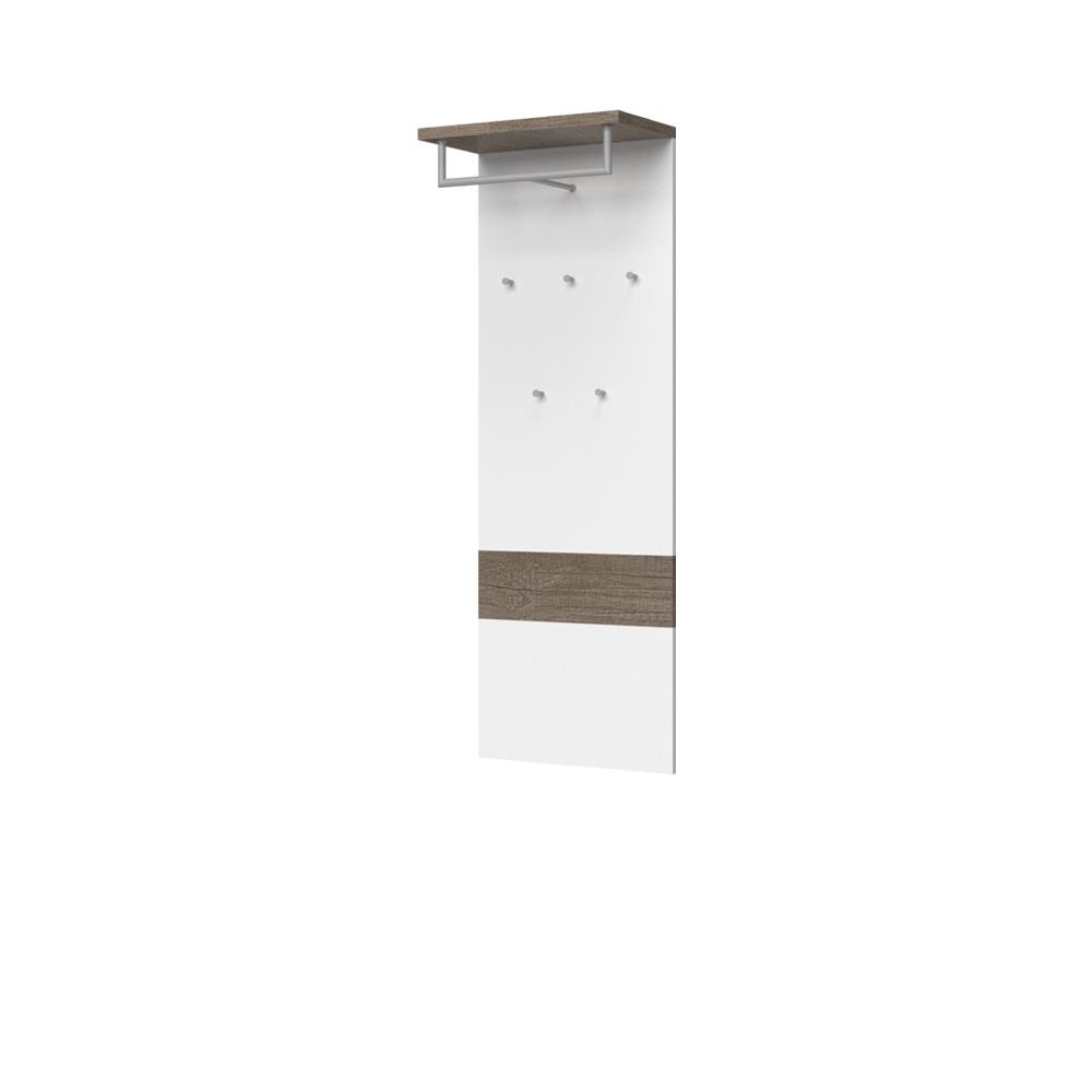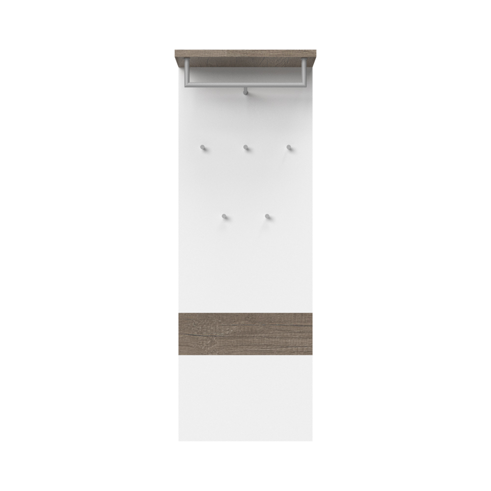 Čiviluk za predsoblje iz kolekcije AZUR sa pet kačilica za garderobu, jednom dekorativnom garderobnom šipkom i policom.