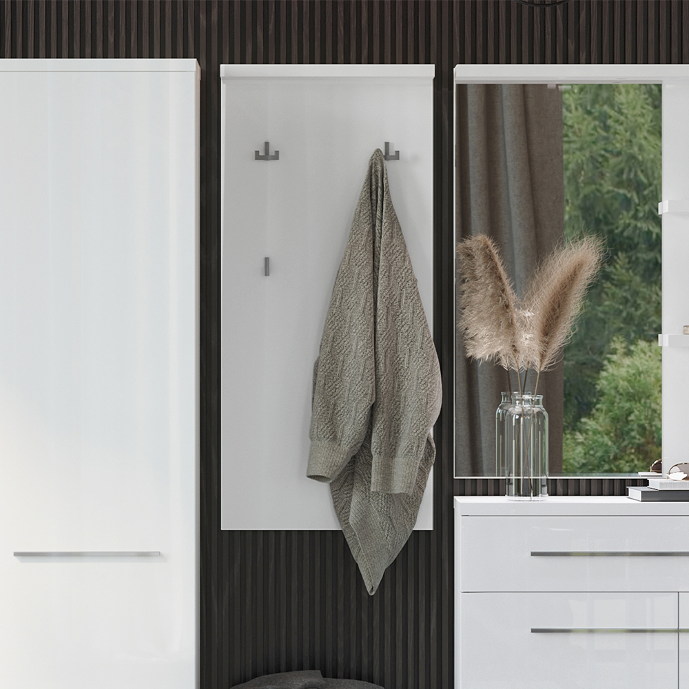 Čiviluk za predsoblje iz kolekcije PIANO sa četiri hromirane kačilice za garderobu i policom
